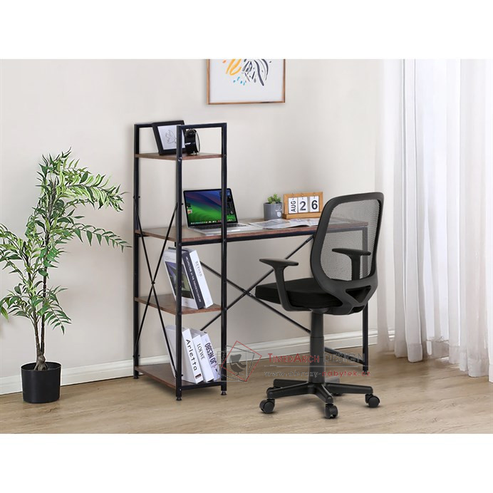 Pracovní stůl s regálem GD-512 OLW na kovové podnoži černé barvy.