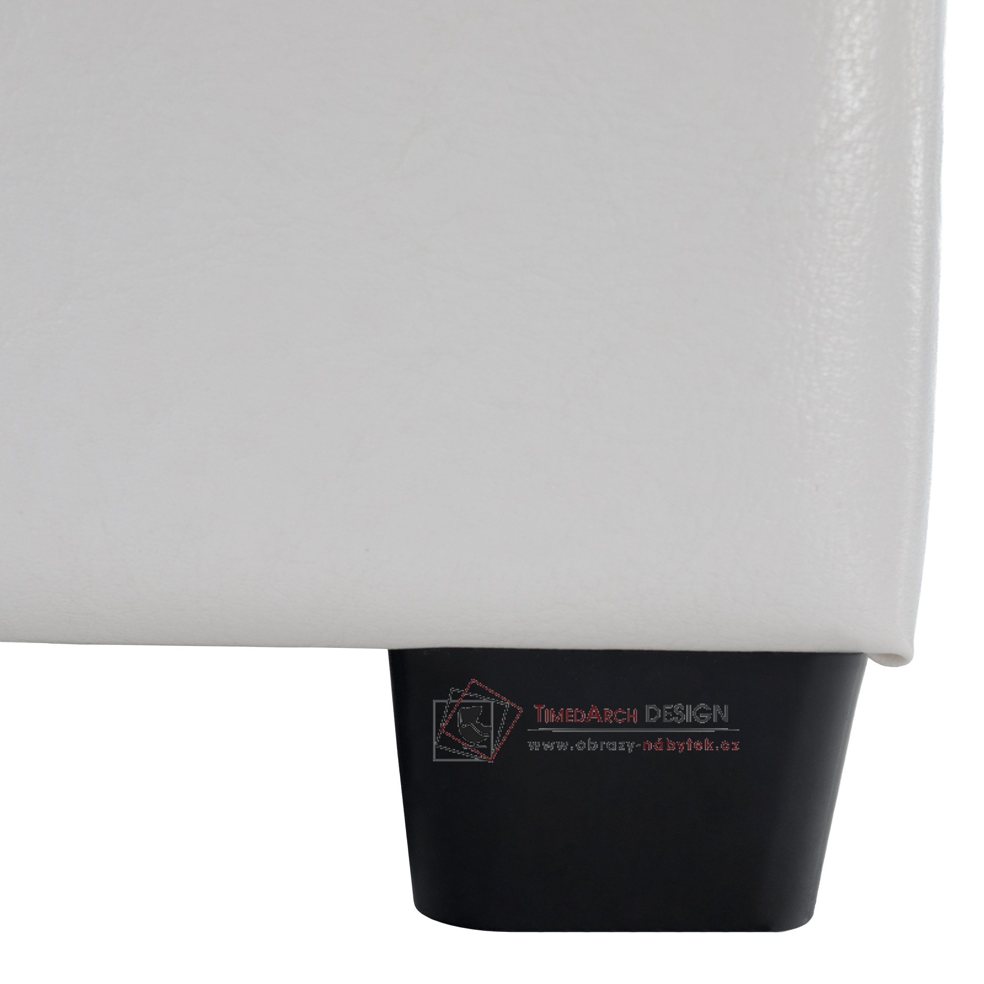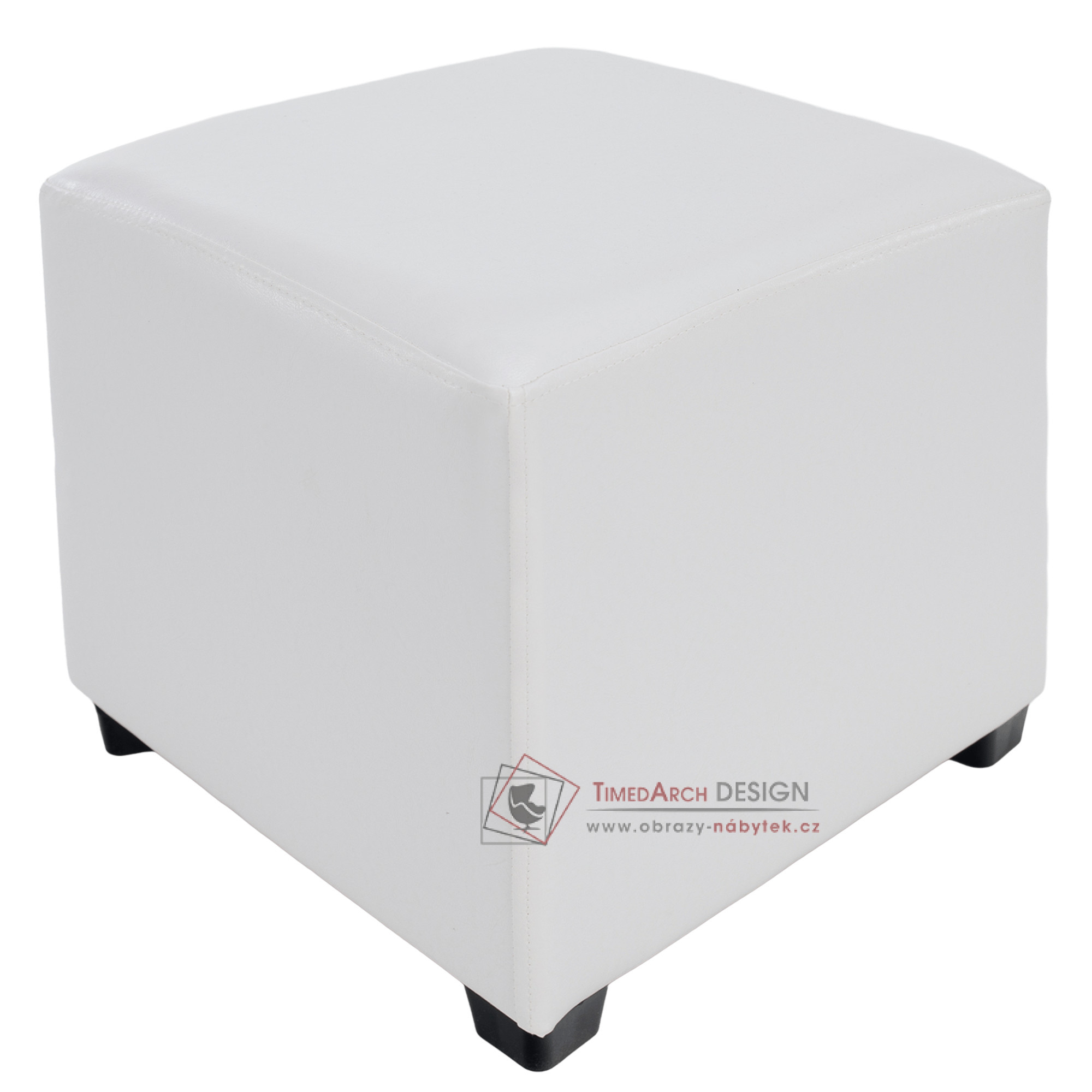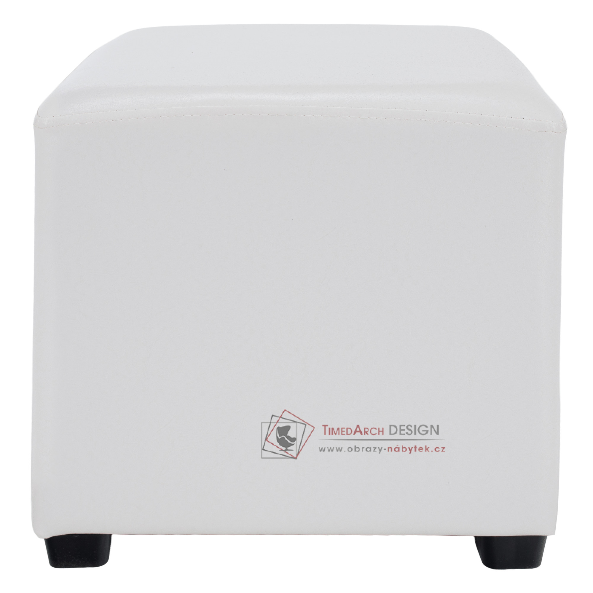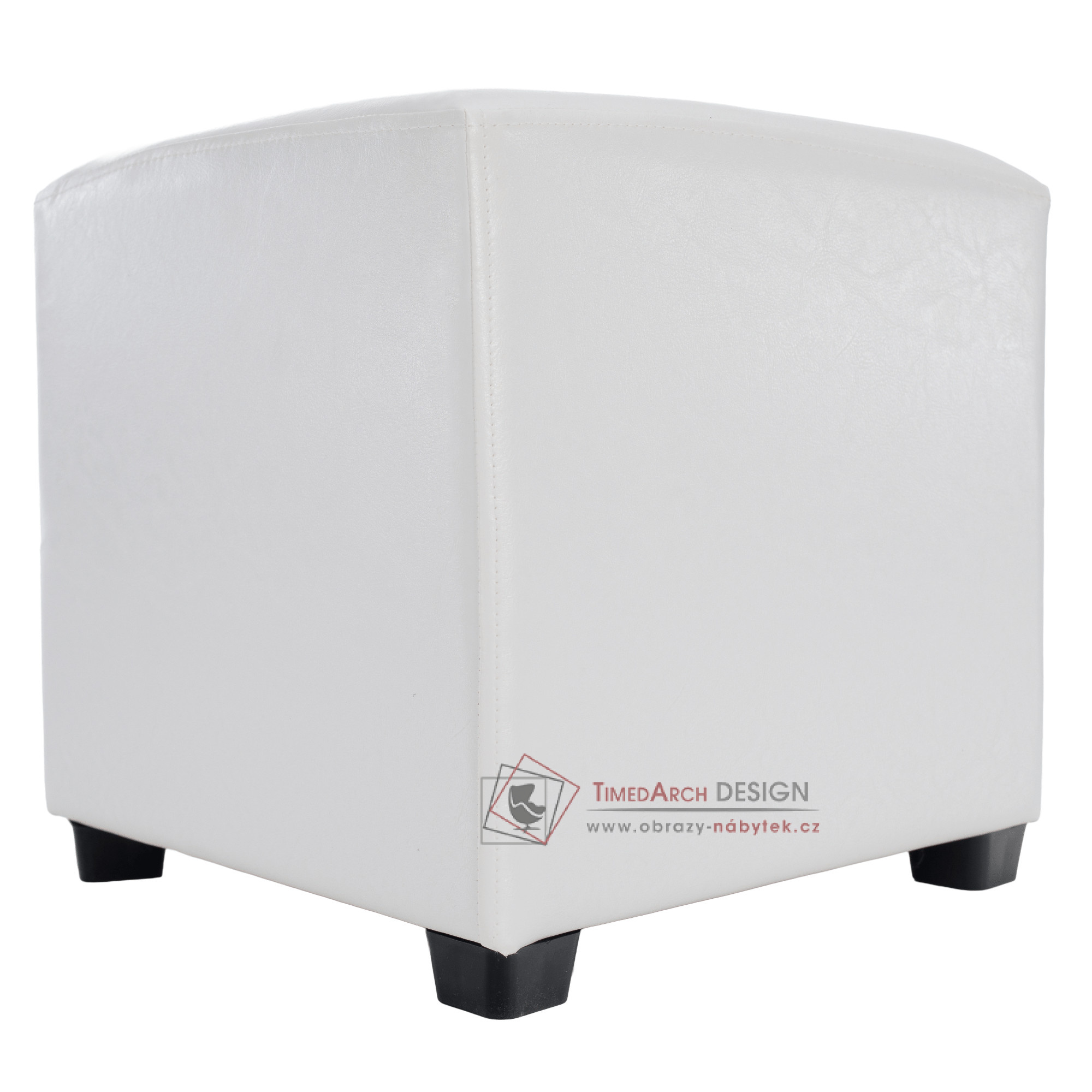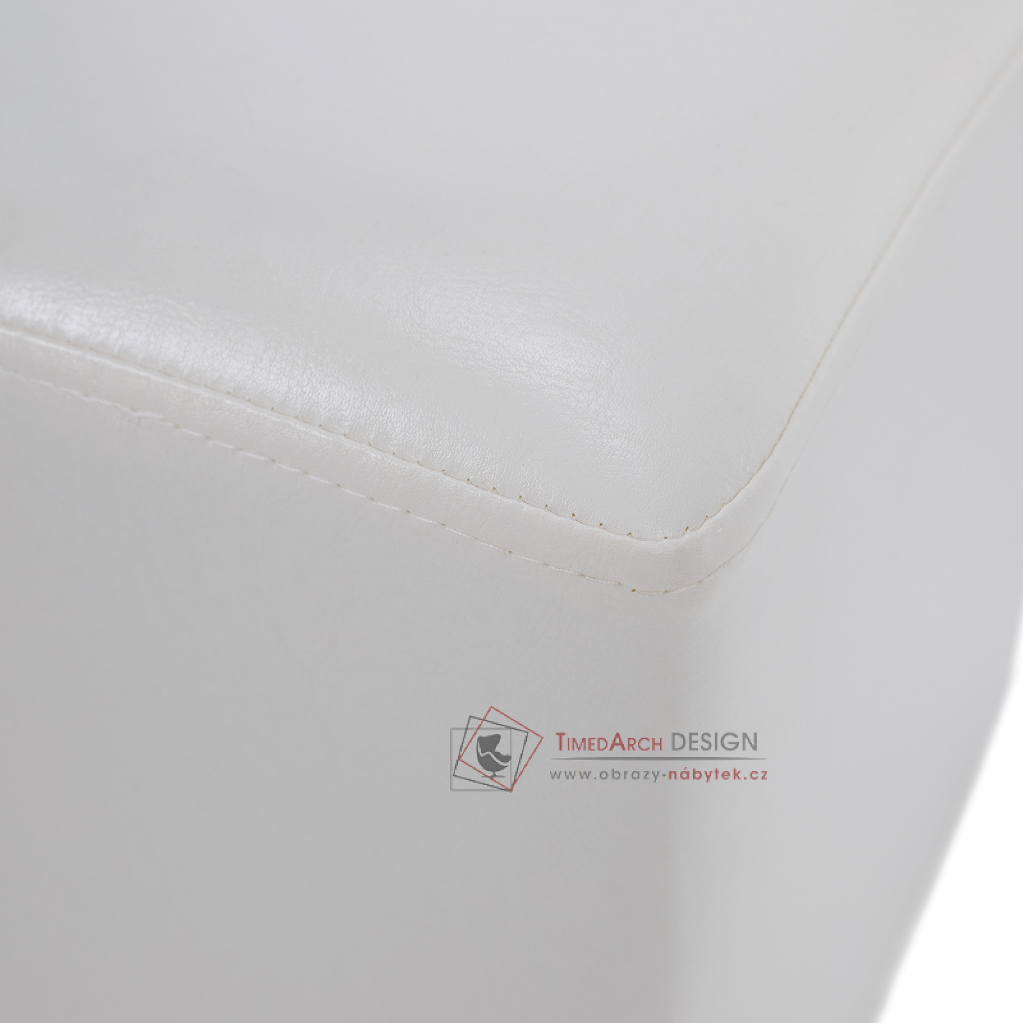 Taburet NIKI NEW je očalouněn bílou PU textilní kůží.