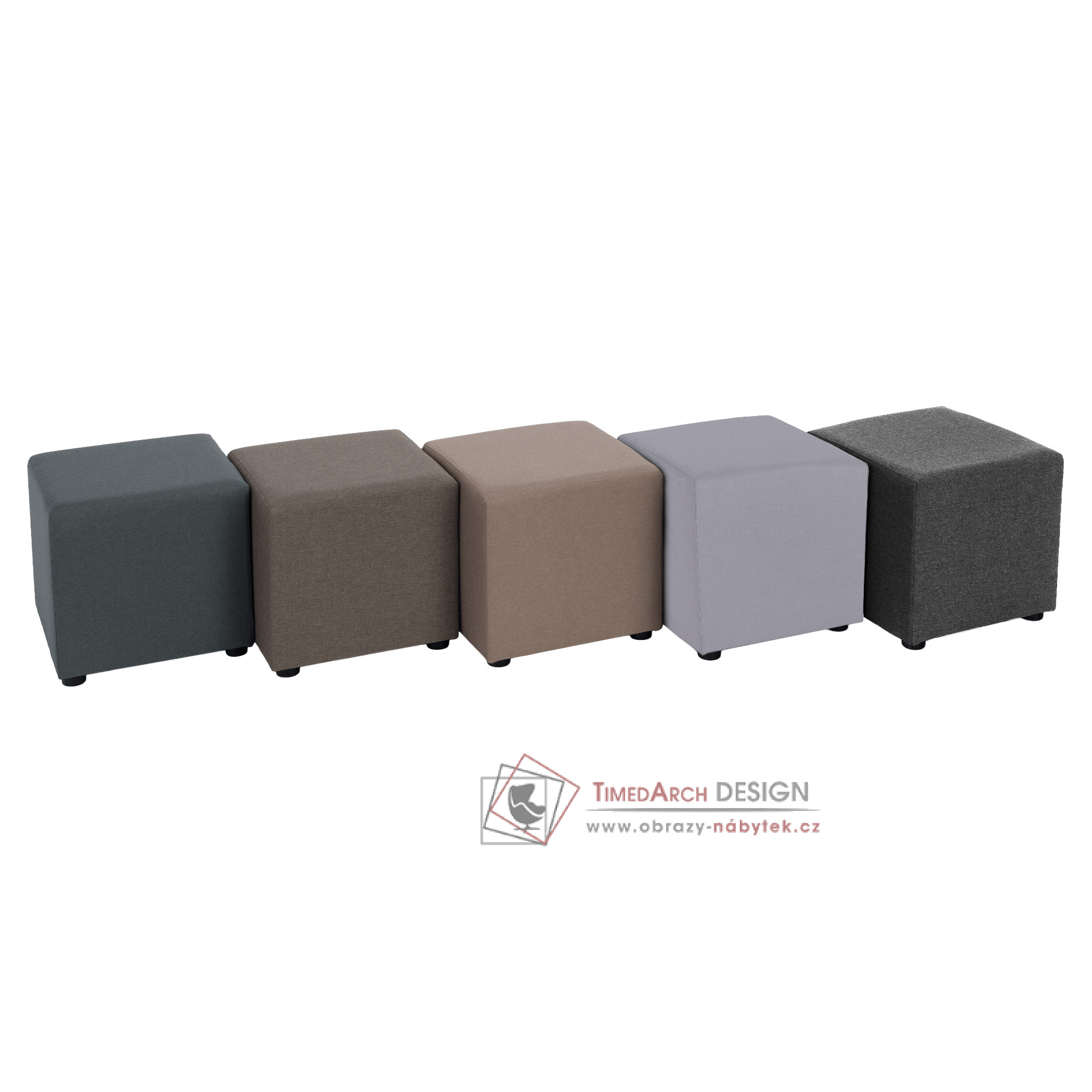Poslouží pro příležitostné sezení, podložení pod nohy nebo odkládací stolek. Svým designem ve tvaru kostky okouzlí nejednoho hosta vaší domácnosti. Vyroben je v látce Savana. Jeho pýchou je celková výška, která představuje rozměr 39 cm. Postaven je na plastových nožičkách.