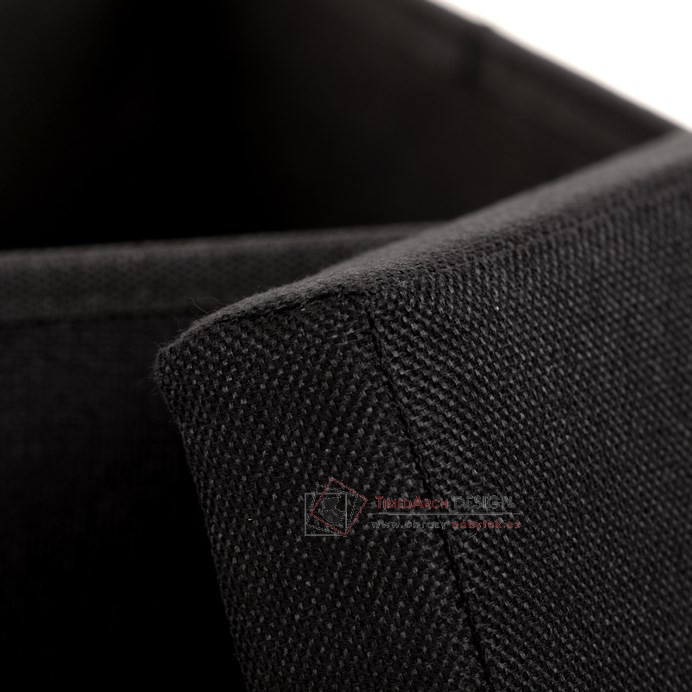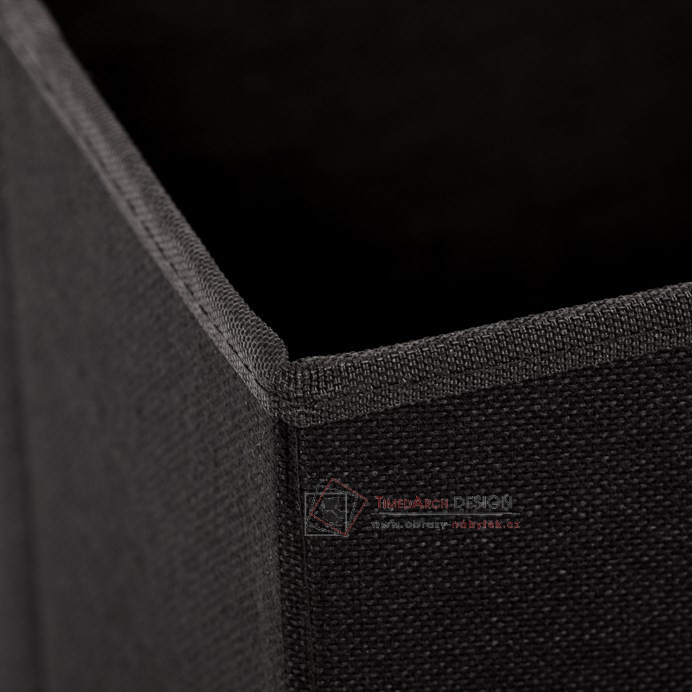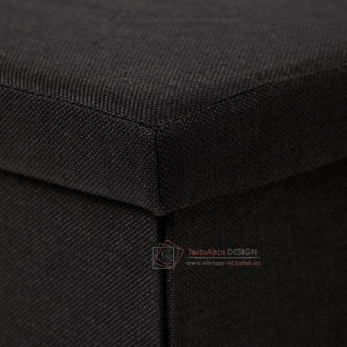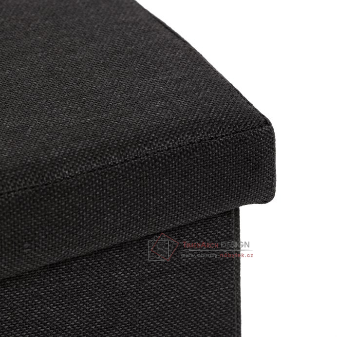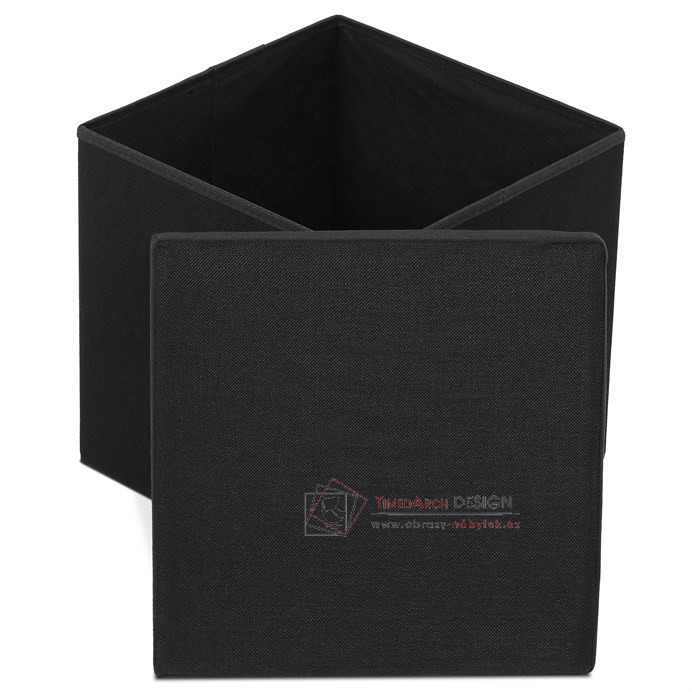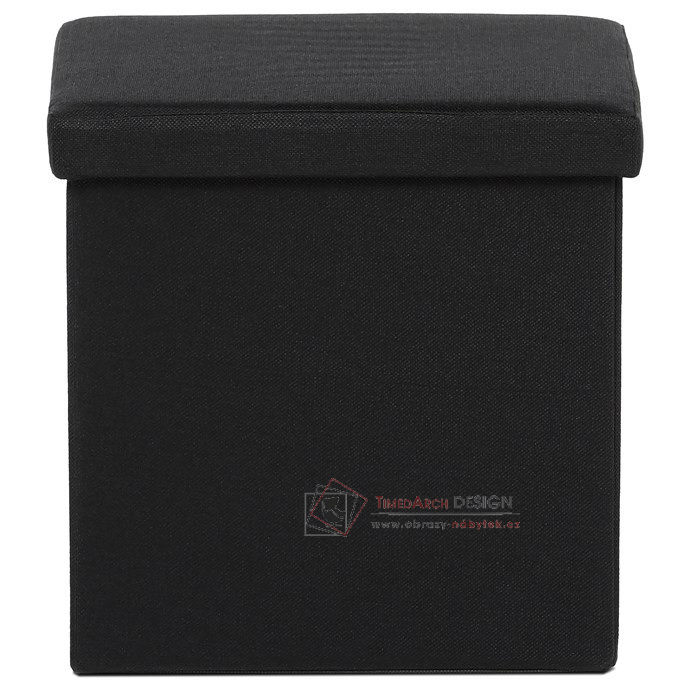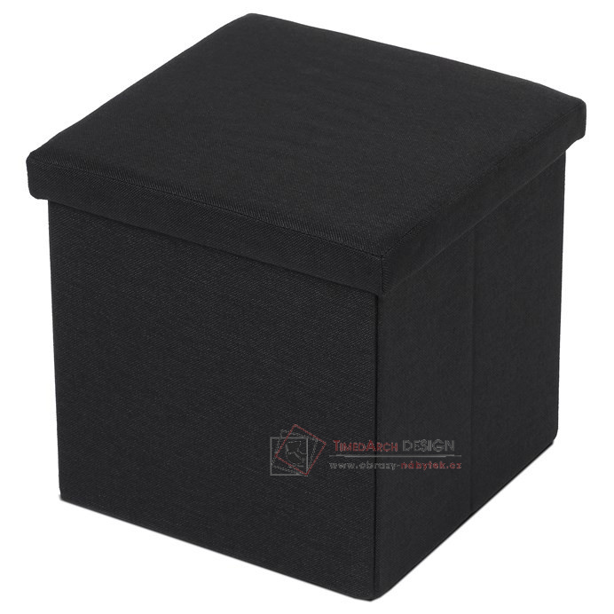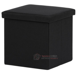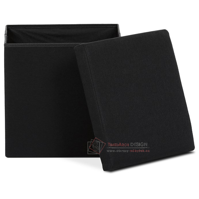 Celočalouněný skládací taburet s úložným prostorem je očalouněný látkou černé barvy.