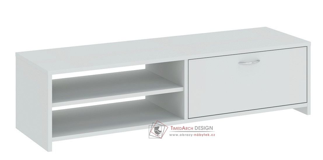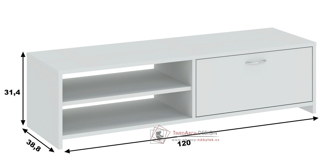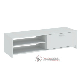 Televizní stolek s výklopnými dvířky je vyrobený z kvalitní laminované DTD v bílém provedení.