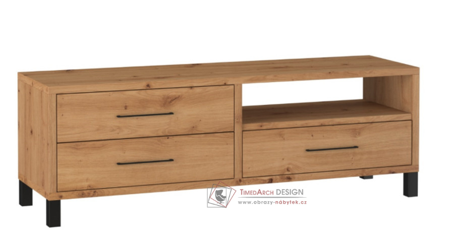 Tekevizní stolek ROMANIA se třemi zásuvkami je vyrobený z kvalitního lamina v barevném provedení dub artisan.