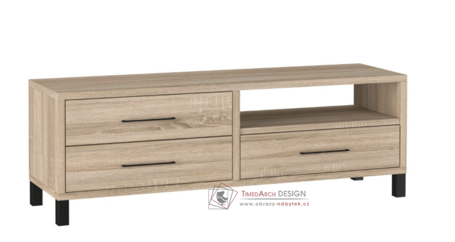 Tekevizní stolek ROMANIA se třemi zásuvkami je vyrobený z kvalitního lamina v barevném provedení dub sonoma.