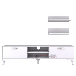 Televizní stolek se 2-ma závěsnými policemi v skandinávském stylu.