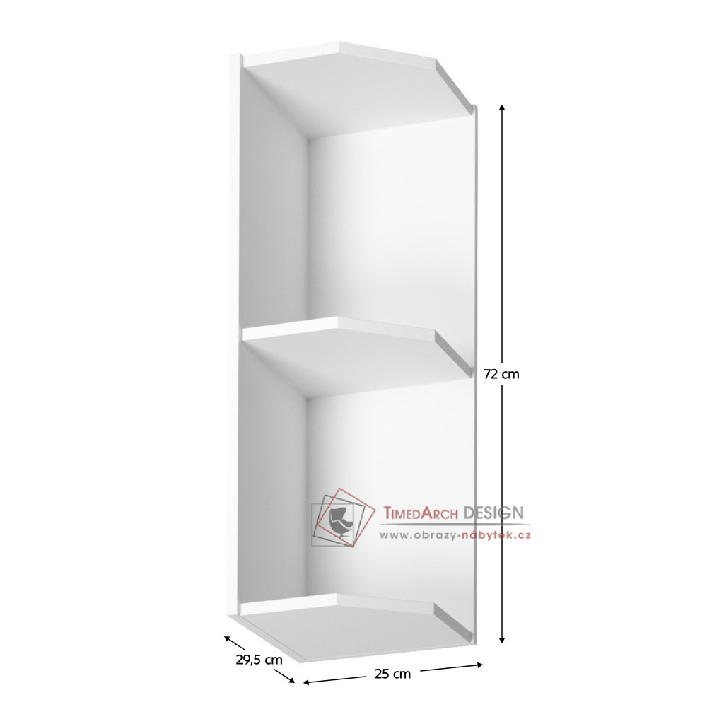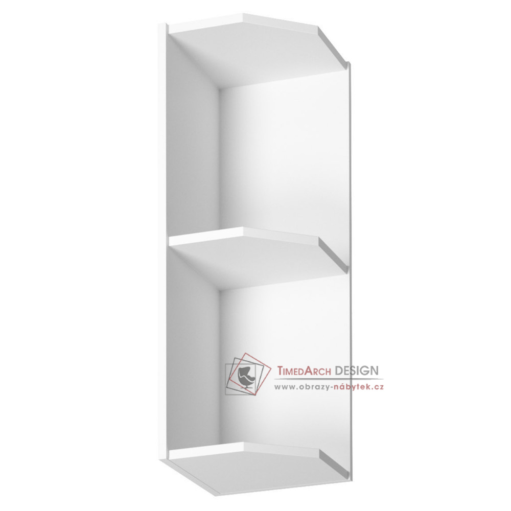 Horní skříňka G25PZ je otevřená, rozdělena jednou policí na dva odkládací prostory. Skříňka je univerzální, uzavírá řadu horních skříněk buď z pravé nebo levé strany. Poslouží k odložení sklenic, dóz se surovinami, kořenek, případně do ní můžete zakomponovat nějaké dekorace, a tak kuchyni oživit.