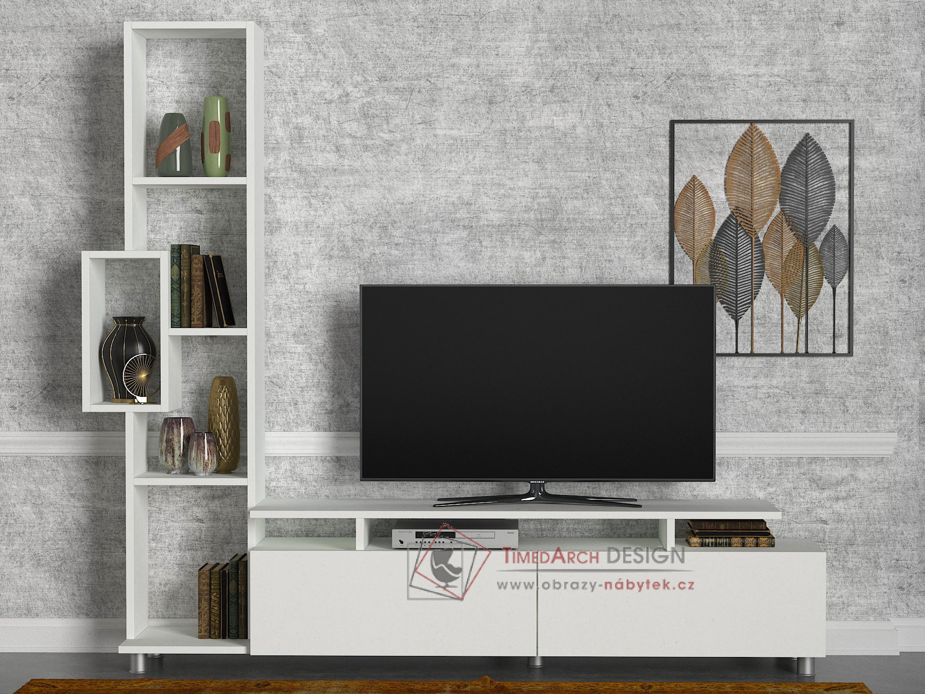 Tato televizní skříňka je nejen esteticky příjemná, ale také velmi praktická. Lze jej snadno připevnit na zeď, čímž ušetříte cenný prostor na podlaze a vytvoříte prostředí bez nepořádku. Bílá barva dodá vašemu obývacímu pokoji nádech elegance a jasu, díky čemuž bude působit prostorněji a příjemněji.