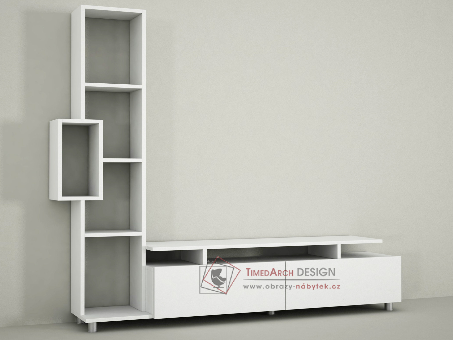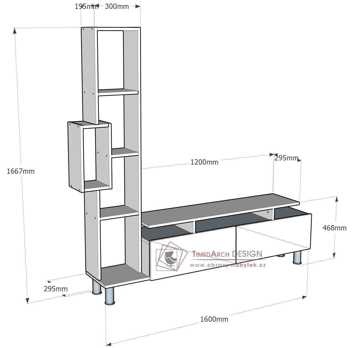 Naše televizní skříňka se vyznačuje elegantním a moderním designem a bez problémů zapadne do jakéhokoli interiéru a dodá vašemu prostoru nádech sofistikovanosti. Dřevotřísková deska s 100% melaminovým povlakem zajišťuje odolnost a dlouhou životnost, takže se jedná o moudrou investici na mnoho let.