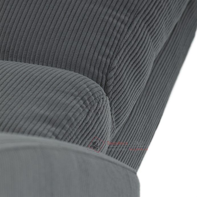 Elegantní šedé křeslo s moderním designem zaujme svým jemným manšestrovým potahem, který nabízí luxusní komfort a nadčasovou krásu.