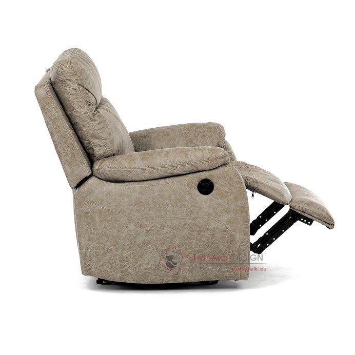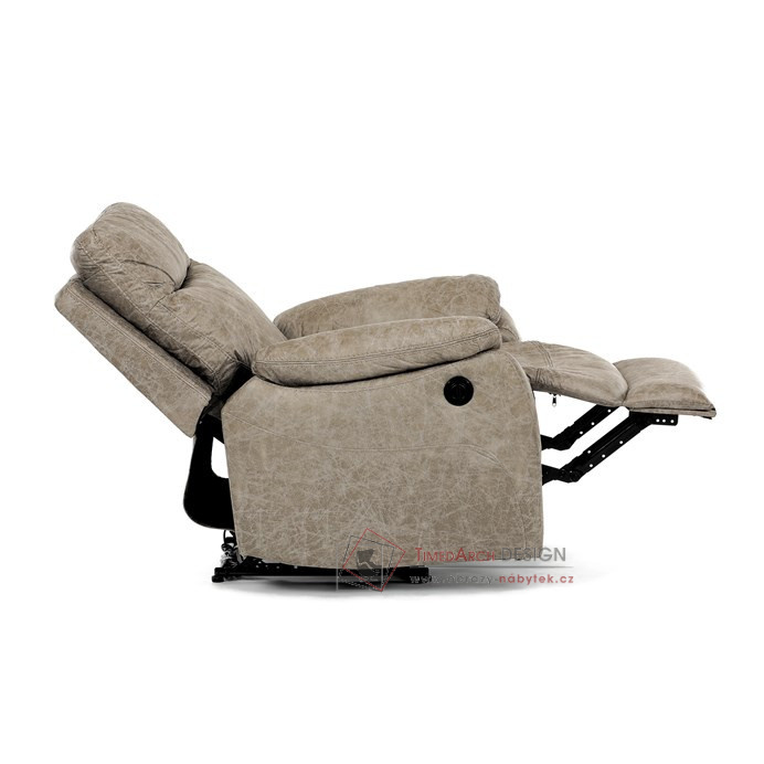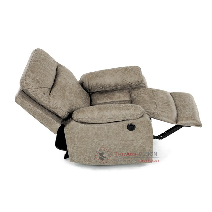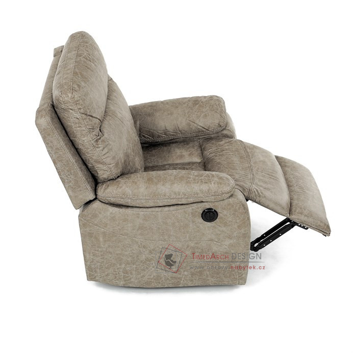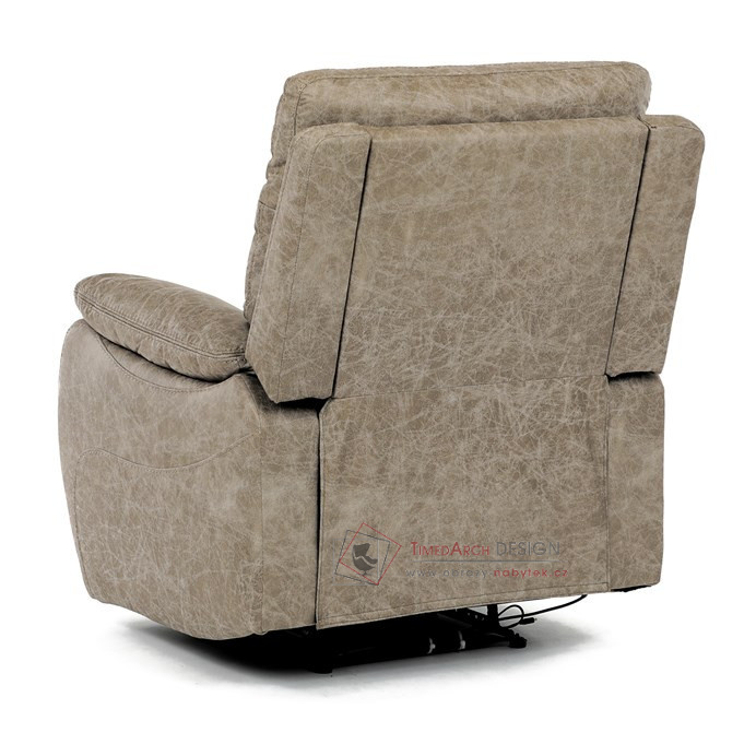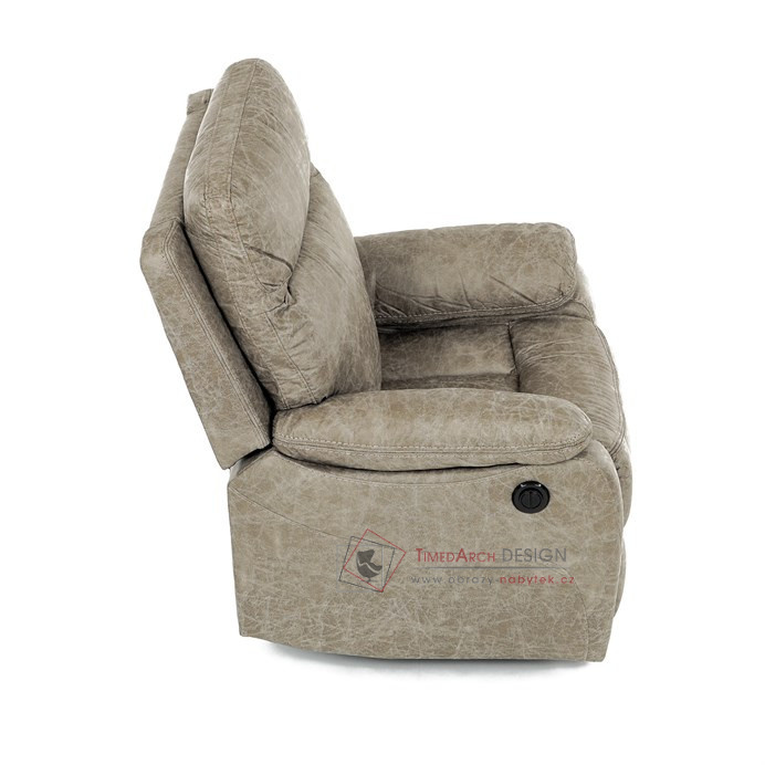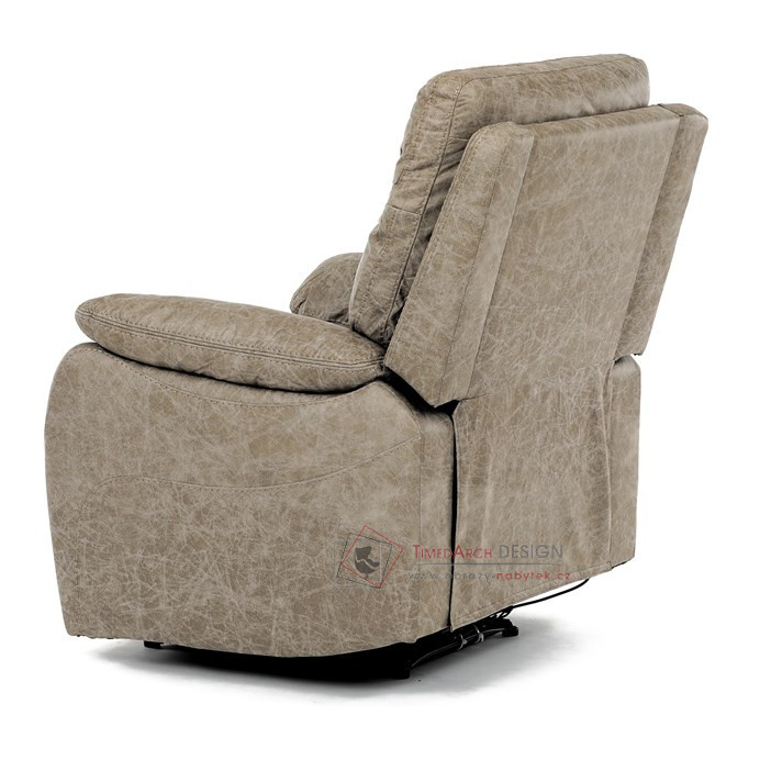 Našemu křeslu díky jeho polohovací funkci a bezdrátovému ovladači (který Vás osvobodí od nepohodlného tahání kabelu) nedokáže konkurovat žádné jiné relaxační křeslo. Potah je z hnědé látky v dekoru vintage, což dodává tomuto kousku nejenom stylový vzhled, ale také příjemný dotek a pocit luxusu. Velkou výhodou tohoto potahu je snadné čištění a dlouhá životnost. Toto křeslo je vybaveno jedním motorem 240V, který umožňuje hladké a tiché ovládání různých poloh. Bezdrátový ovladač pak zajišťuje pohodlné ovládání pohybů křesla. Toto elegantní křeslo nabízí skvělé proporce. S šířkou 90 cm, hloubkou 97 cm a výškou 103 cm je dostatečně prostorné pro nerušený odpočinek. Důležitou roli při dosahování luxusního pocitu hraje i příjemná výška sedu 50 cm.