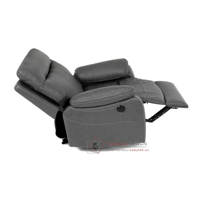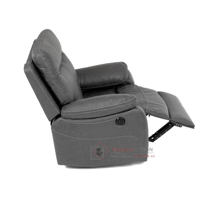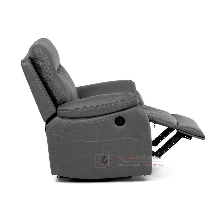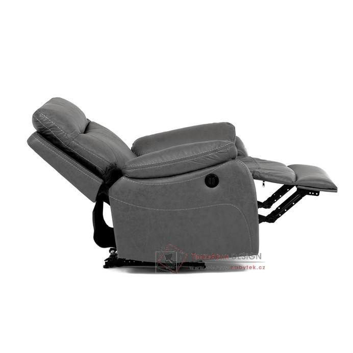 Našemu křeslu díky jeho polohovací funkci a bezdrátovému ovladači (který Vás osvobodí od nepohodlného tahání kabelu) nedokáže konkurovat žádné jiné relaxační křeslo. Potah je ze šedé látky v dekoru vintage, což dodává tomuto kousku nejenom stylový vzhled, ale také příjemný dotek a pocit luxusu. Velkou výhodou tohoto potahu je snadné čištění a dlouhá životnost. Toto křeslo je vybaveno jedním motorem 240V, který umožňuje hladké a tiché ovládání různých poloh. Bezdrátový ovladač pak zajišťuje pohodlné ovládání pohybů křesla. Toto elegantní křeslo nabízí skvělé proporce. S šířkou 89 cm, hloubkou 99 cm a výškou 103 cm je dostatečně prostorné pro nerušený odpočinek. Důležitou roli při dosahování luxusního pocitu hraje i příjemná výška sedu 50 cm.