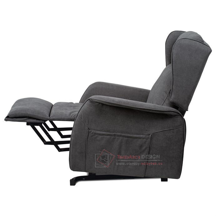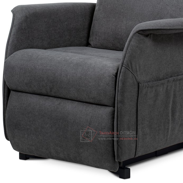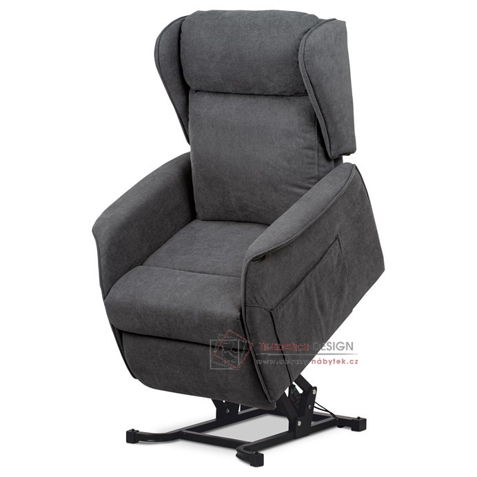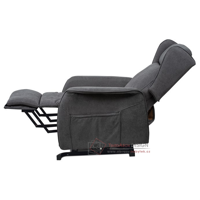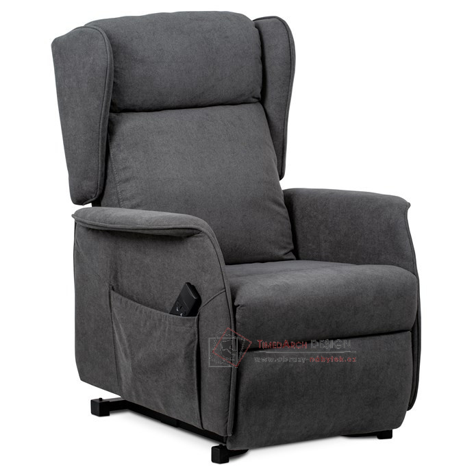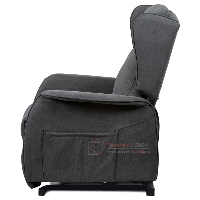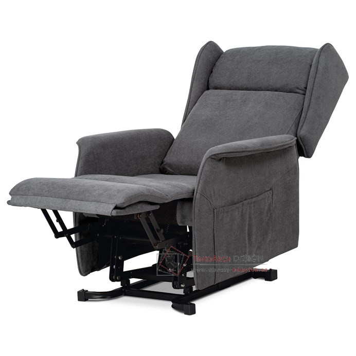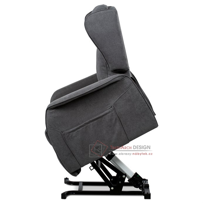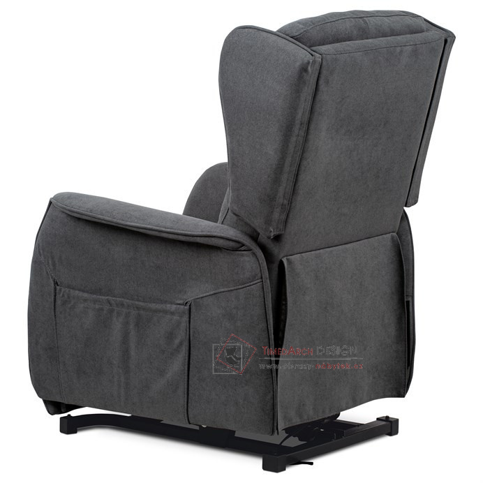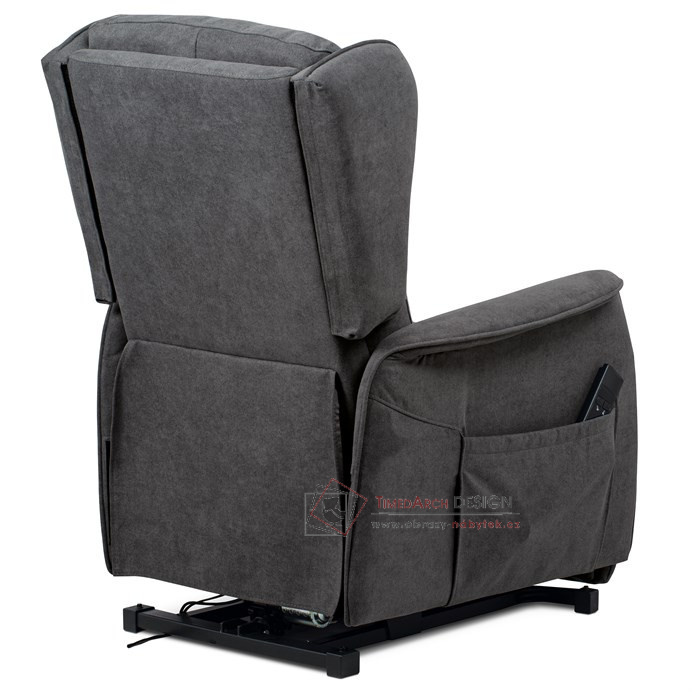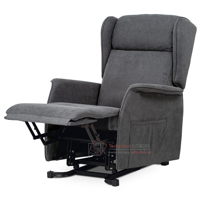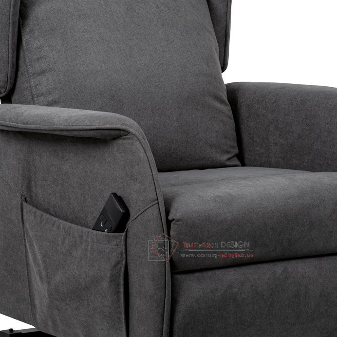 Potah je z příjemné a měkké látky šedé barvy. Masivní a kovová konstrukce, polstrování z PU pěny, vlnovce a zpevňující popruhy dodávají skvělé pohodlí a pevnost. Integrovaný motor pomáhá nejen při vstávání, ale i při nastavení relaxace v jakékoliv požadované poloze. Ovládání pomocí kabelového dálkového ovladače, umístěného v praktické kapse, je opravdu hračkou. Druhou kapsu můžete využít nejen na knížku, ovladač na TV nebo jí naplnit bonbóny na mlsání. Úplný rozklad zvládne křeslo za 16 sekund, výklop za 13 sekund (nezatížené). Šíře područek je 11 cm, výška 56 cm a světlá výška křesla je 8 cm. Tímto vším si ho prostě zamilujete a již nikdy nebudete chtít opustit své nové televizní křeslo.