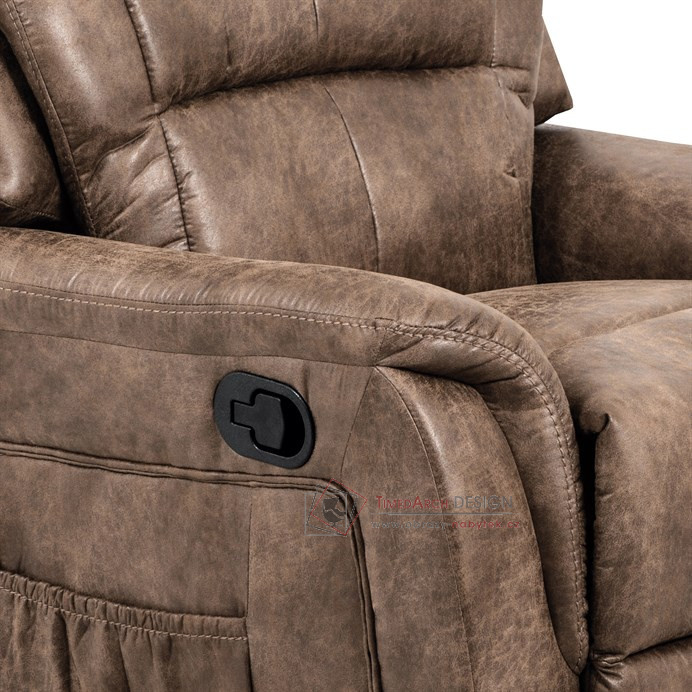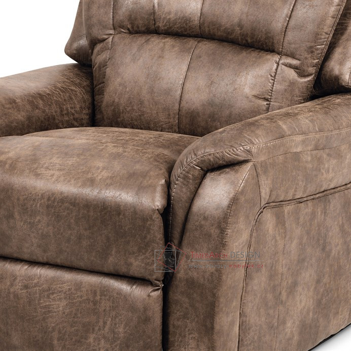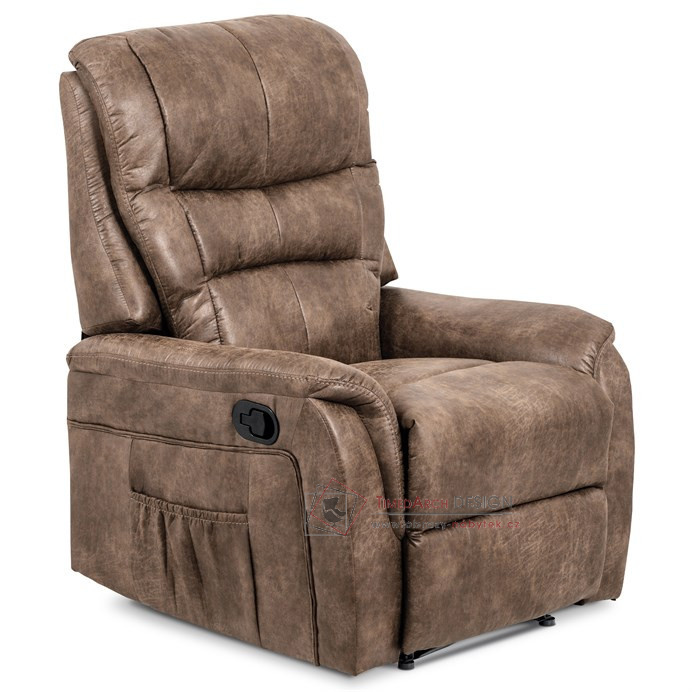 Na Vašem maximálním pohodlí přidá výjimečné polstrování a pohodlné polstrované opěrky rukou. Křeslo je samozřejmě polohovatelné. Pomocí malé černé aretační páčky na vnějším boku křesla uvolníte pojistku podnožky a opěráku. Následně pak vlastní vahou přizpůsobíte polohu křesla. Úžasný vzhled podtrhuje prošití pohodlného opěráku. Na vnějším boku křesla je také praktická látková kapsa. Nosnost křesla je až 130 kg.