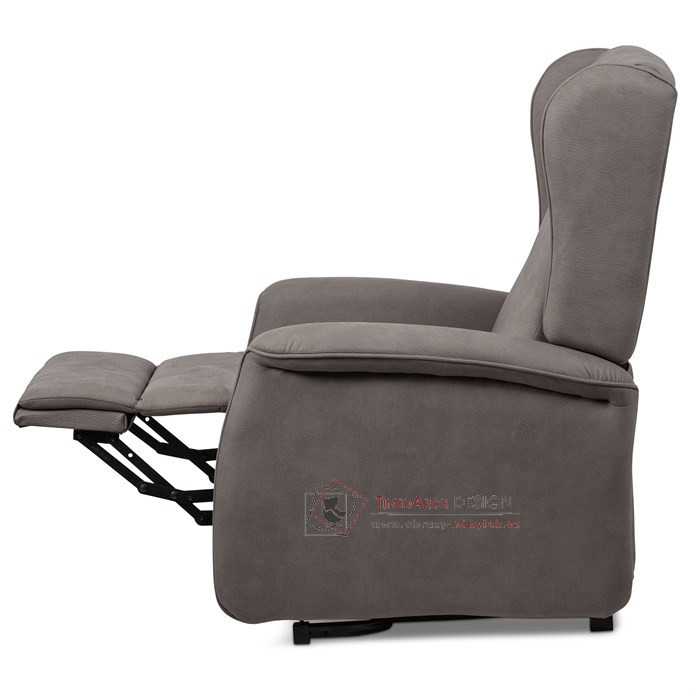 Potah je z příjemné a měkké látky v trendy béžovostříbrném odstínu a dekoru kůže. Masivní a kovová konstrukce, polstrování z PU pěny, vlnovce a zpevňující popruhy dodávají skvělé pohodlí a pevnost. Dva integrované a úsporné motory spolu s hydraulickými písty pomáhají nejen při vstávání, ale i při nastavení více možností relaxace a v jakékoliv požadované poloze. Ovládání pomocí kabelového dálkového ovladače, umístěného v praktické kapse, je opravdu hračkou.. Rozklad přední části zvládne křeslo za 10 sekund, opěrák se samostatně sklopí ta 14 s, kompletní výklop za 16 sekund (nezatížené). Jako bonus je možné použít funkci výklop i v rozložené poloze. Šíře područek je 12 cm, výška 60 cm a světlá výška křesla je 6 cm. Tímto vším si ho prostě zamilujete a již nikdy nebudete chtít opustit své nové televizní křeslo.