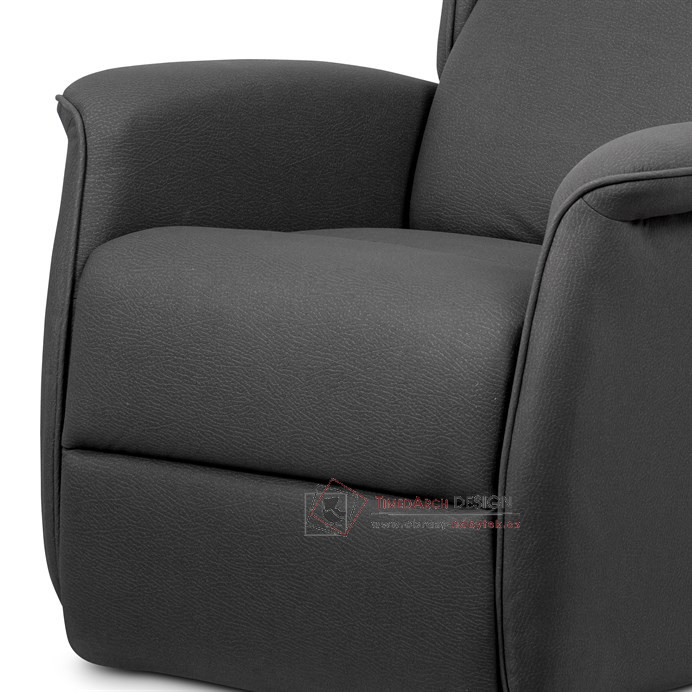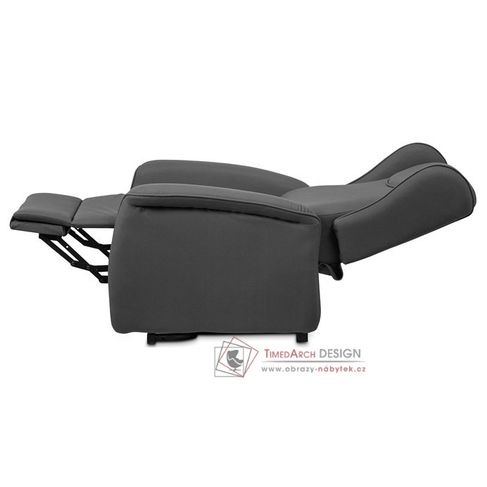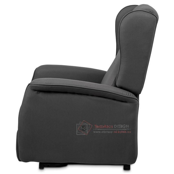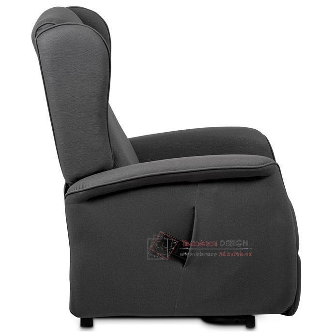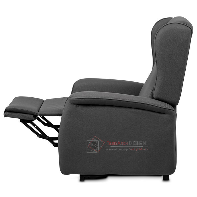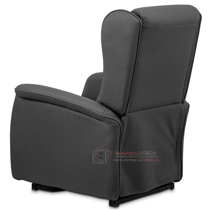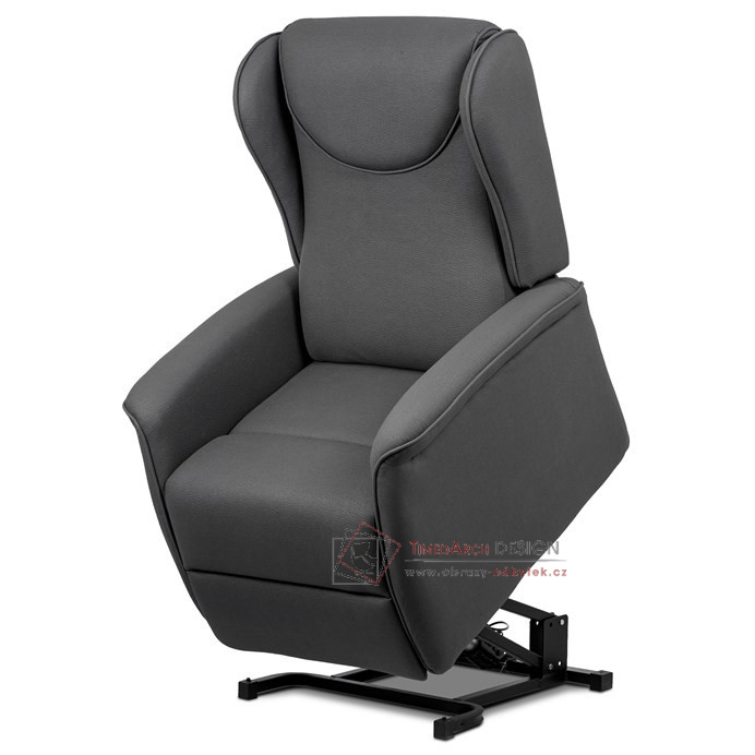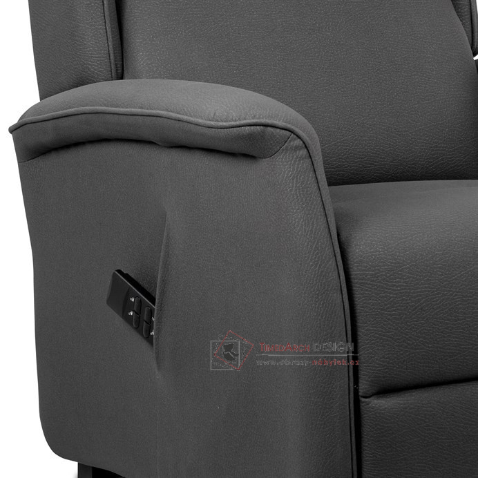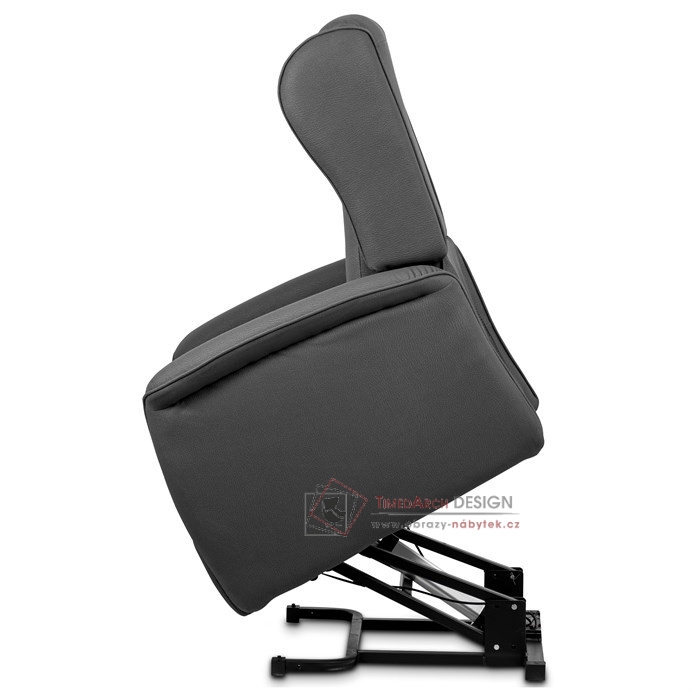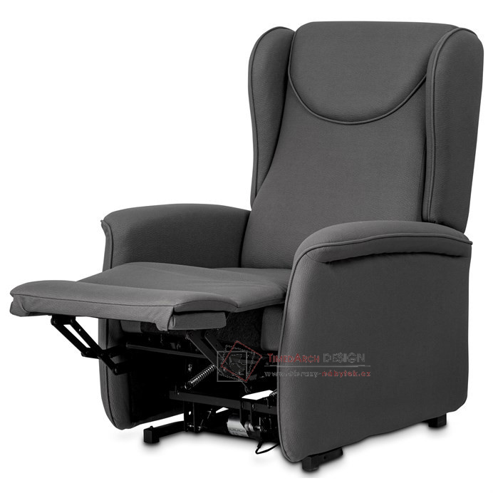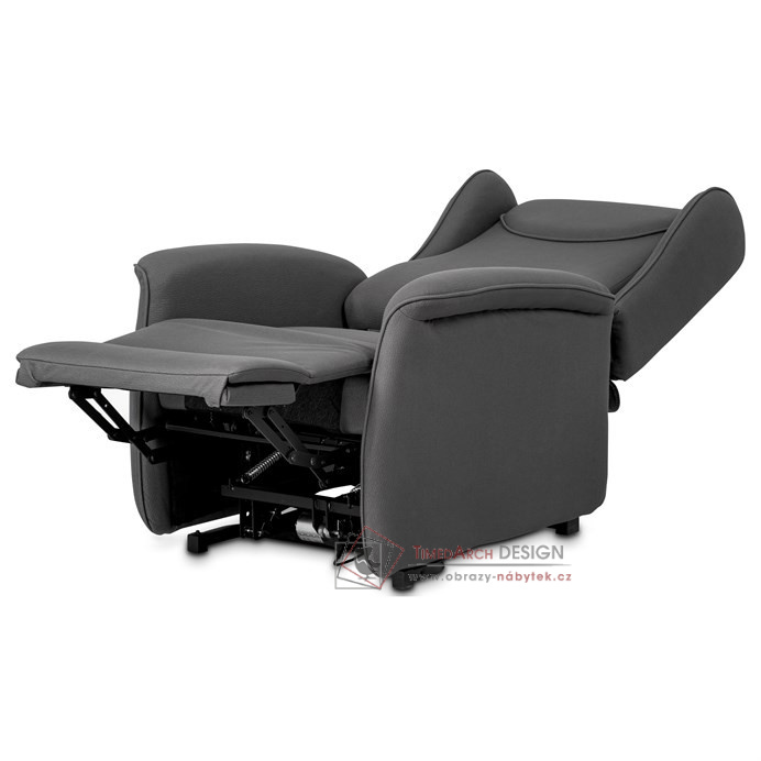 Potah je z příjemné a měkké látky šedé barvy v dekoru kůže. Masivní a kovová konstrukce, polstrování z PU pěny, vlnovce a zpevňující popruhy dodávají skvělé pohodlí a pevnost. Dva integrované a úsporné motory spolu s hydraulickými písty pomáhají nejen při vstávání, ale i při nastavení více možností relaxace a v jakékoliv požadované poloze. Ovládání pomocí kabelového dálkového ovladače, umístěného v praktické kapse, je opravdu hračkou.. Rozklad přední části zvládne křeslo za 10 sekund, opěrák se samostatně sklopí ta 14 s, kompletní výklop za 16 sekund (nezatížené). Jako bonus je možné použít funkci výklop i v rozložené poloze. Šíře područek je 12 cm, výška 60 cm a světlá výška křesla je 6 cm. Tímto vším si ho prostě zamilujete a již nikdy nebudete chtít opustit své nové televizní křeslo.