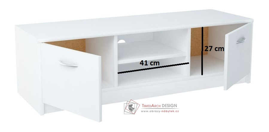 Dvoudveřový televizní stolek MARK je vyrobený z laminované DTD v moderním barevném provedení bílý mat.