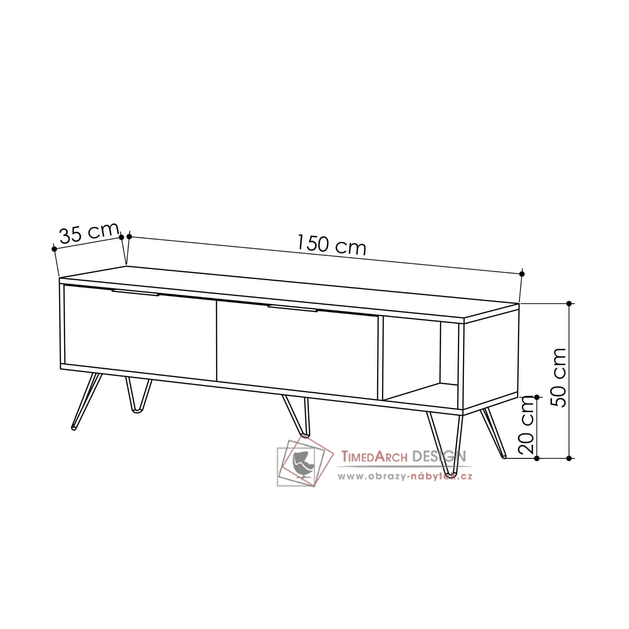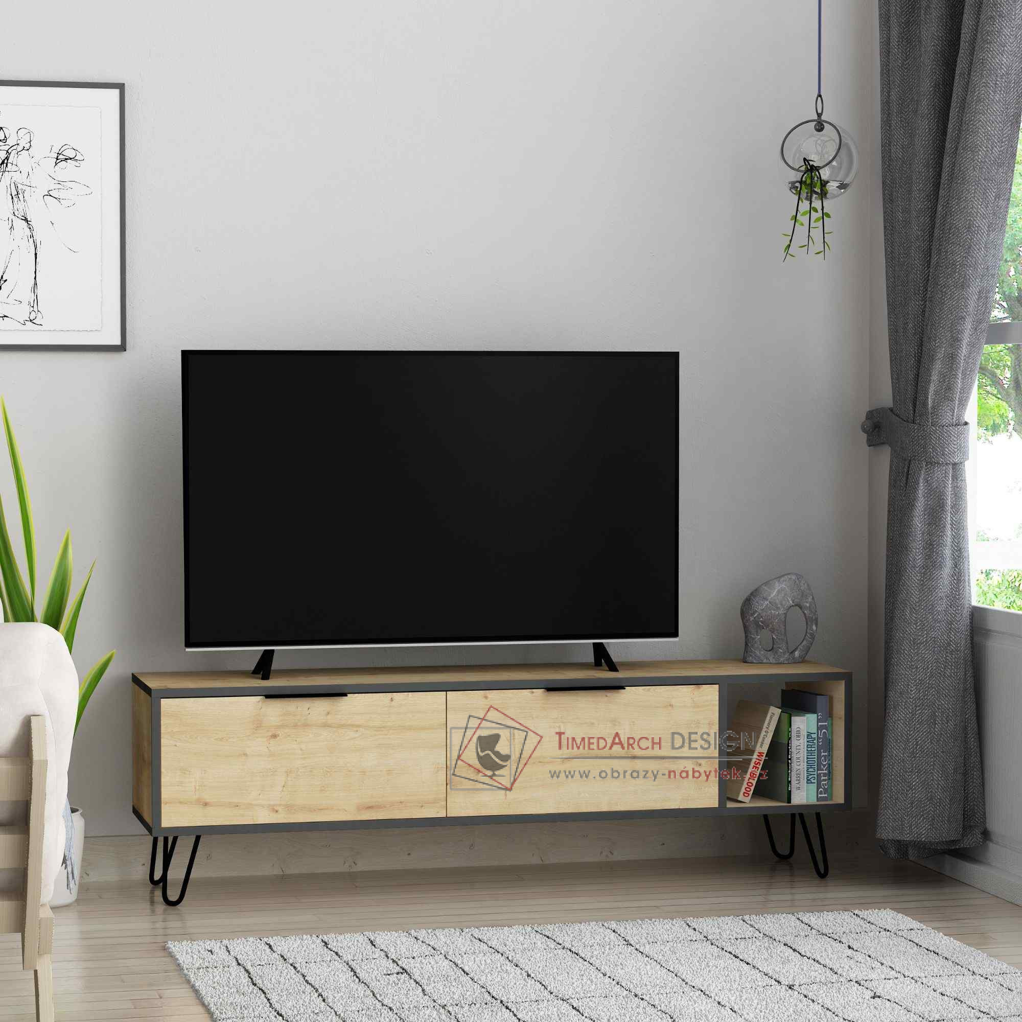Televizní stolek 2-dveřový RIHO je vyrobený v kombinaci kovu, melaminu a VT laminátu o tl. 18 mm, což zajišťuje odolnost vůči opotřebení a dlouhou životnost.