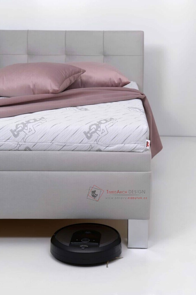 Postelové čela ze zadní strany jsou očalouněné černou tkaninou.