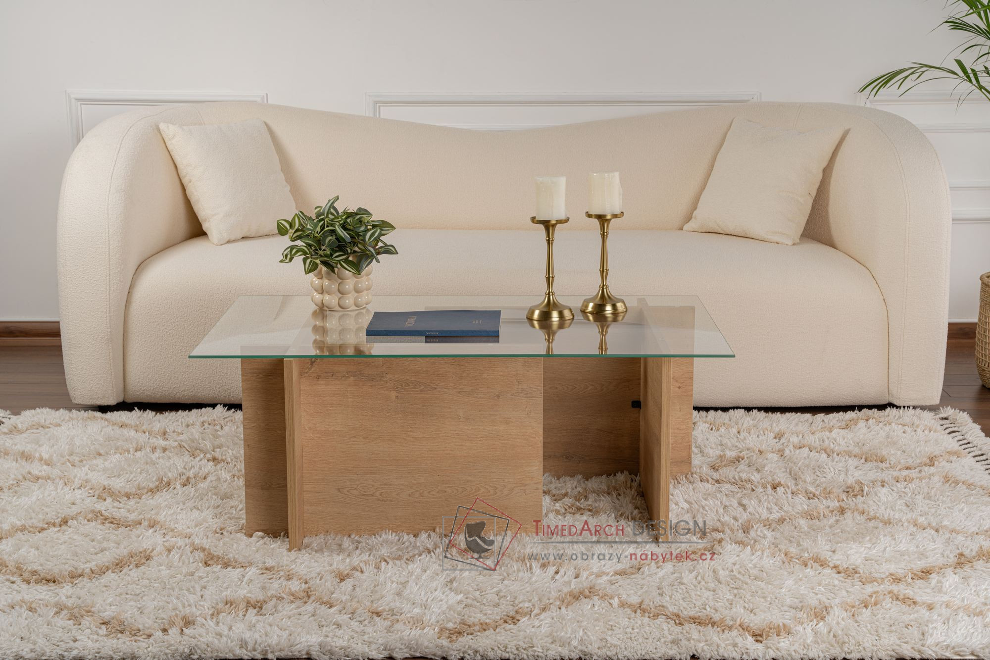 Tento konferenční stolek je vyroben ze 100% tvrzeného skla a má robustní rám z dřevotřísky s melaminovým povlakem a je vyroben tak, aby vydržel. Tloušťka 18 mm zajišťuje odolnost a stabilitu, zatímco barva medového dubu dodá vašemu obývacímu pokoji nádech tepla.