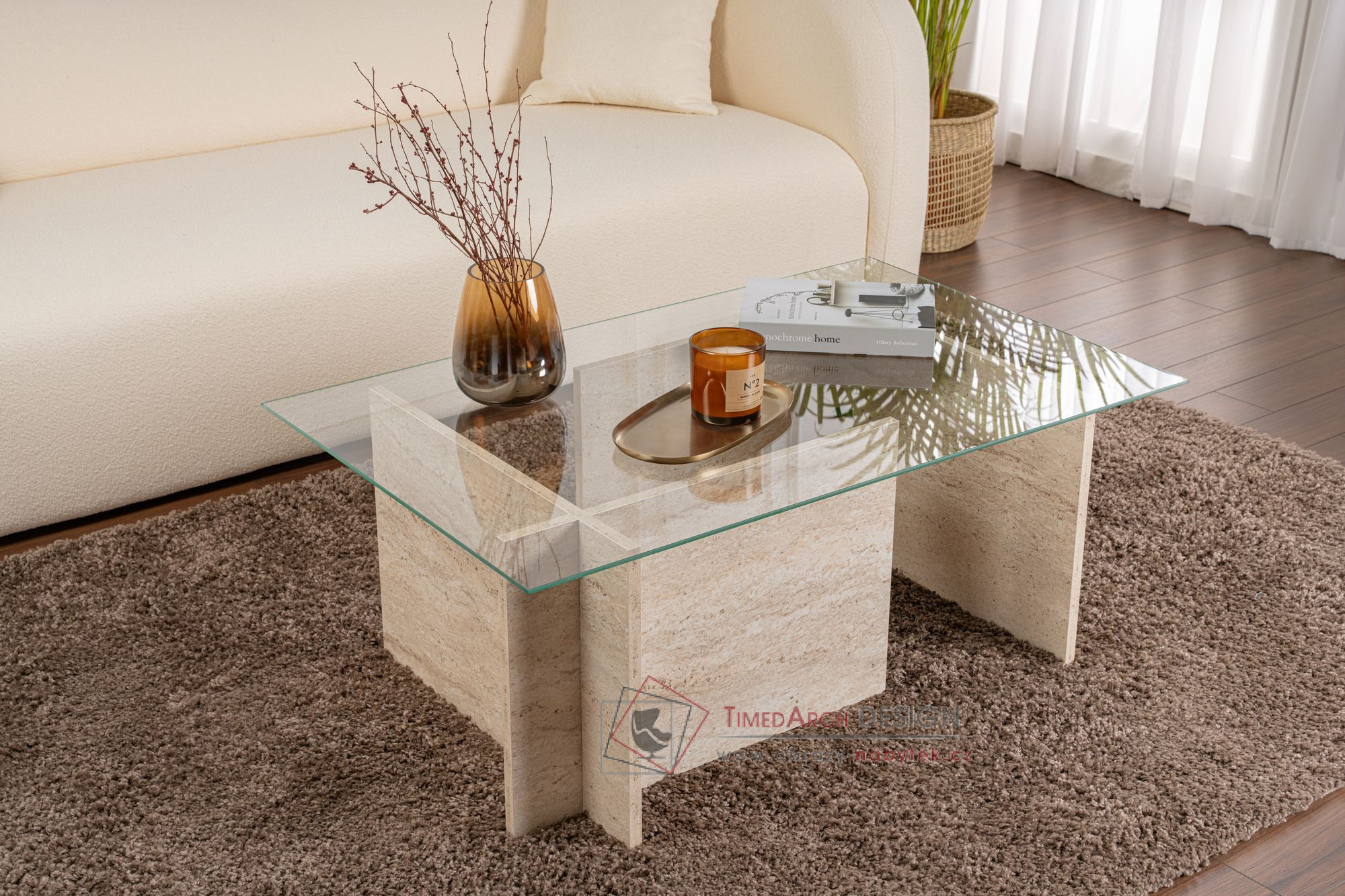 Pozdvihněte svůj obytný prostor s úžasným konferenčním stolkem z travertinového mramoru VETRINO.
