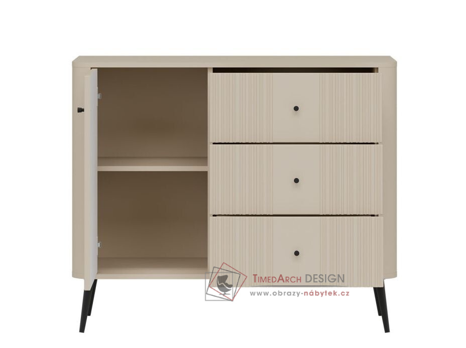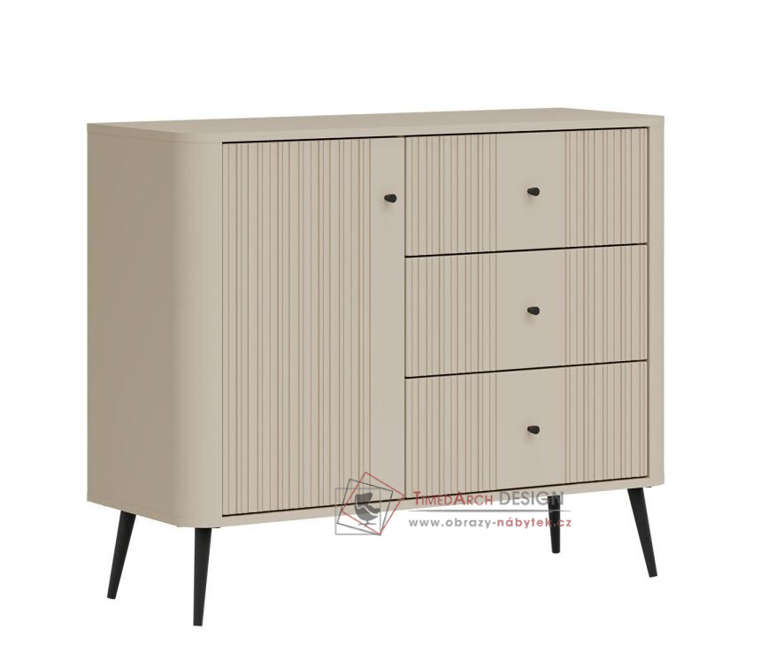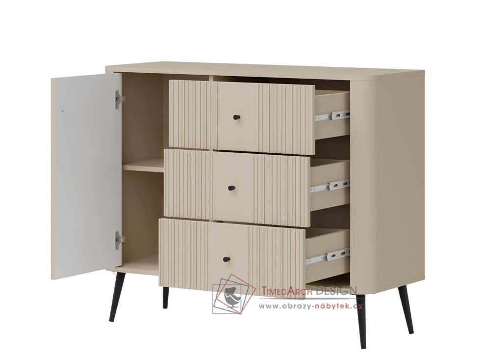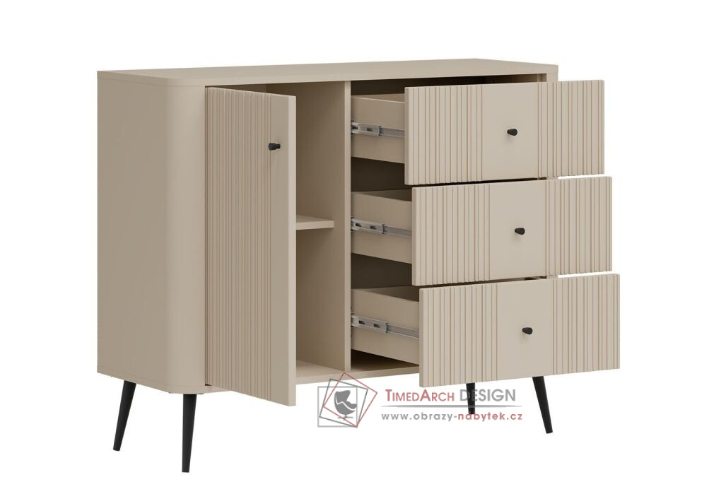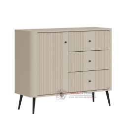 Komoda VG03 z kolekce VIGO je krásná a jedinečná komoda, která se dokonale hodí do každé místnosti. Komoda VG03 je jedinečnou kombinací moderního designu a praktických řešení, která splňují očekávání i těch nejnáročnějších zákazníků. Snadno čistitelný a proti poškrábání odolný povrch komody zajišťuje dlouhou životnost. Moderní design v kašmírové barvě dodává komodě jedinečný a výrazný vzhled.