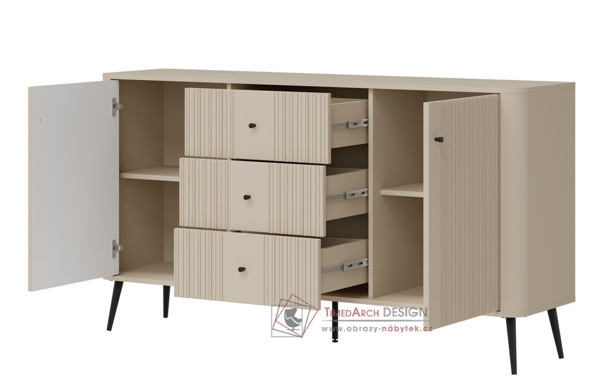 Komoda VG05 z kolekce VIGO je krásná a jedinečná komoda, která se dokonale hodí do každé místnosti. Komoda VG05 je jedinečnou kombinací moderního designu a praktických řešení, která splňují očekávání i těch nejnáročnějších zákazníků. Snadno čistitelný a proti poškrábání odolný povrch komody zajišťuje dlouhou životnost. Moderní design v kašmírové barvě dodává komodě jedinečný a výrazný vzhled.