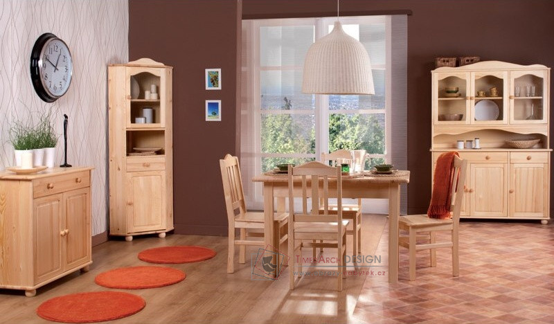 Vitrína WK-105 z řady masivního nábytku je vyrobená z kvalitního borovicového dřeva.