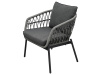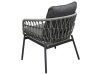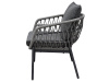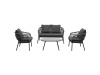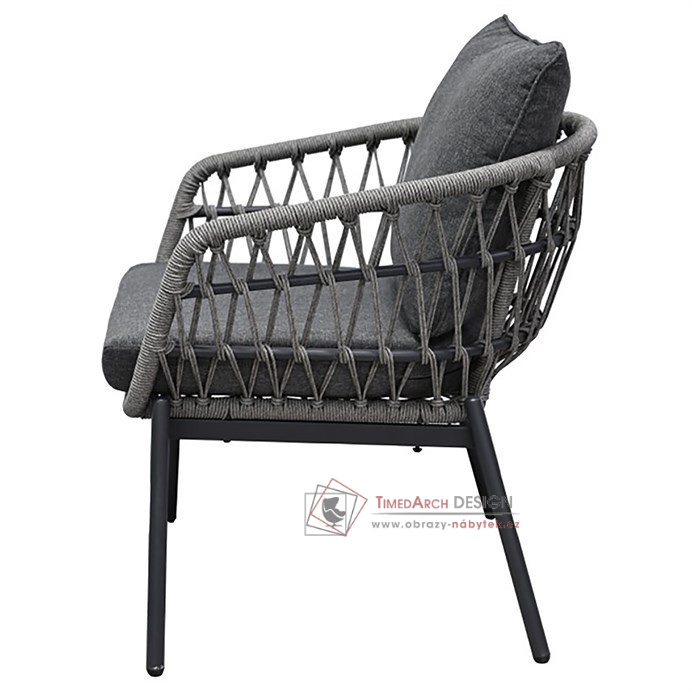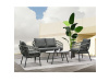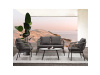 Je vyrobena z odolného polyratanu v šedém odstínu, který dodává nábytku svěží a moderní vzhled. Konstrukce z kovu s práškovou úpravou v antracitové barvě zaručuje dlouhou životnost a stabilitu. Voděodolné polštáře poskytují maximální pohodlí a jsou ideální pro venkovní použití za každého počasí. Deska stolku je vyrobena z polywood materiálu, který má velmi dlouhou životnost a je odolný proti vnějším vlivům počasí.Tento set kombinuje styl a funkčnost, ať už chcete relaxovat nebo uspořádat venkovní posezení s přáteli. Souprava je navíc snadno udržovatelná a velmi praktická.
