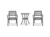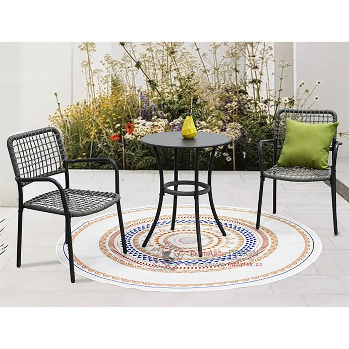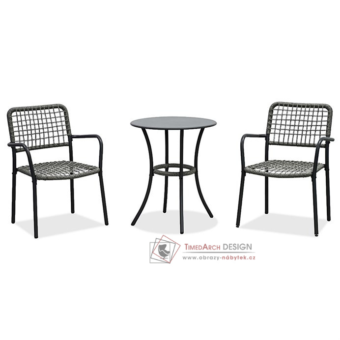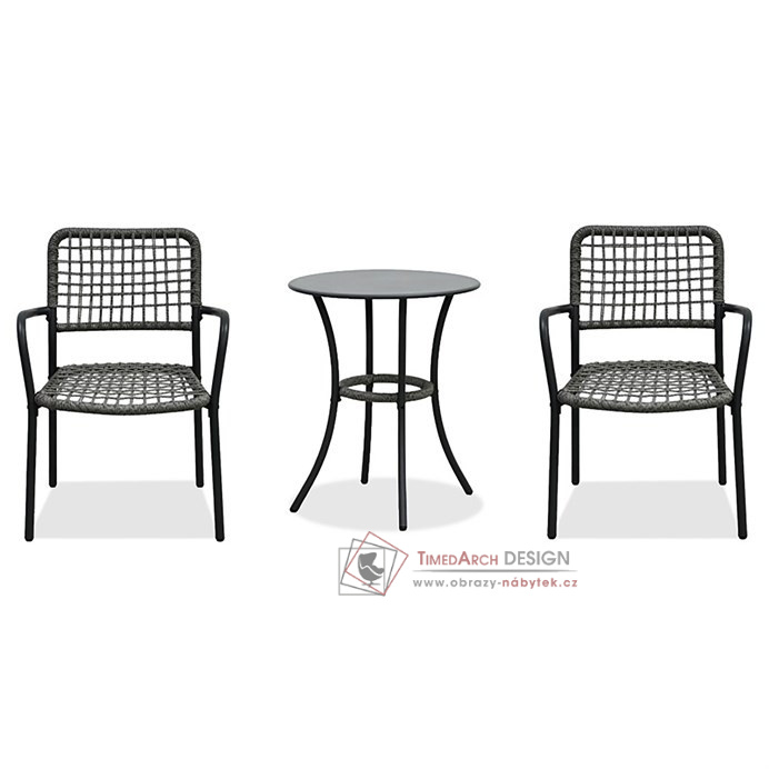Skládá se ze dvou židlí a kulatého stolku, což poskytuje ideální prostor pro relaxaci u kávy či čaje. Židle jsou vyrobeny z pevného polyratanu v šedém odstínu a mají stabilní kovovou konstrukci s práškovou povrchovou úpravou v antracitové barvě, která zajišťuje odolnost vůči venkovním vlivům. Deska i nohy stolku jsou vyrobeny z kovu, což zaručuje dlouhou životnost. Moderní design tohoto setu se skvěle hodí do každého venkovního prostoru a je snadno udržovatelný. Perfektní řešení pro malý i větší venkovní prostor.
