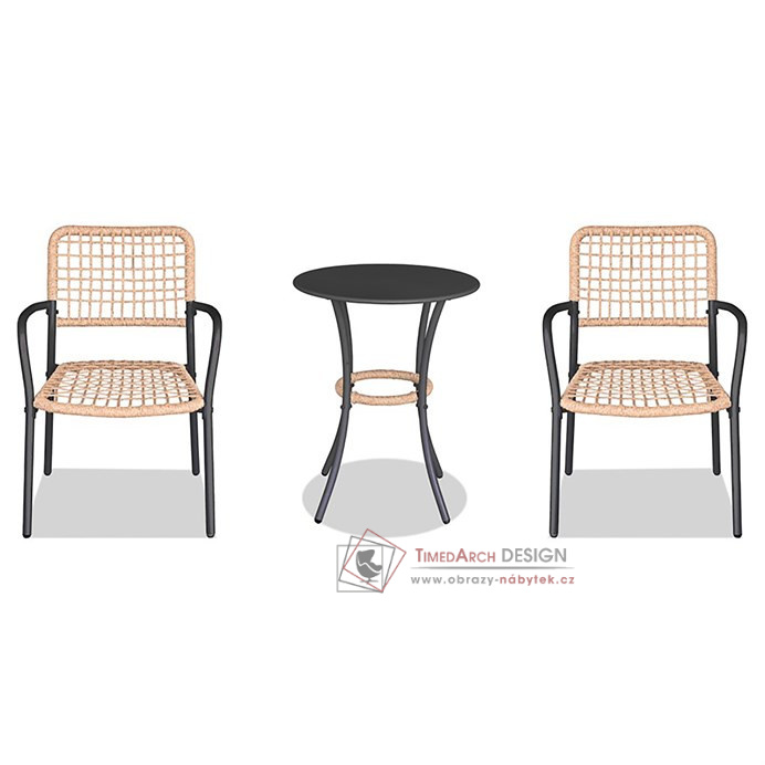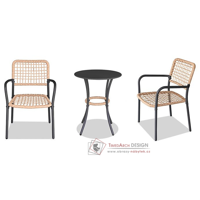 Skládá se ze dvou židlí a kulatého stolku, což poskytuje ideální prostor pro relaxaci u kávy či čaje. Židle jsou vyrobeny z pevného polyratanu v přírodním odstínu a mají stabilní kovovou konstrukci s práškovou povrchovou úpravou v antracitové barvě, která zajišťuje odolnost vůči venkovním vlivům. Deska i nohy stolku jsou vyrobeny z kovu, což zaručuje dlouhou životnost. Moderní design tohoto setu se skvěle hodí do každého venkovního prostoru a je snadno udržovatelný. Perfektní řešení pro malý i větší venkovní prostor.