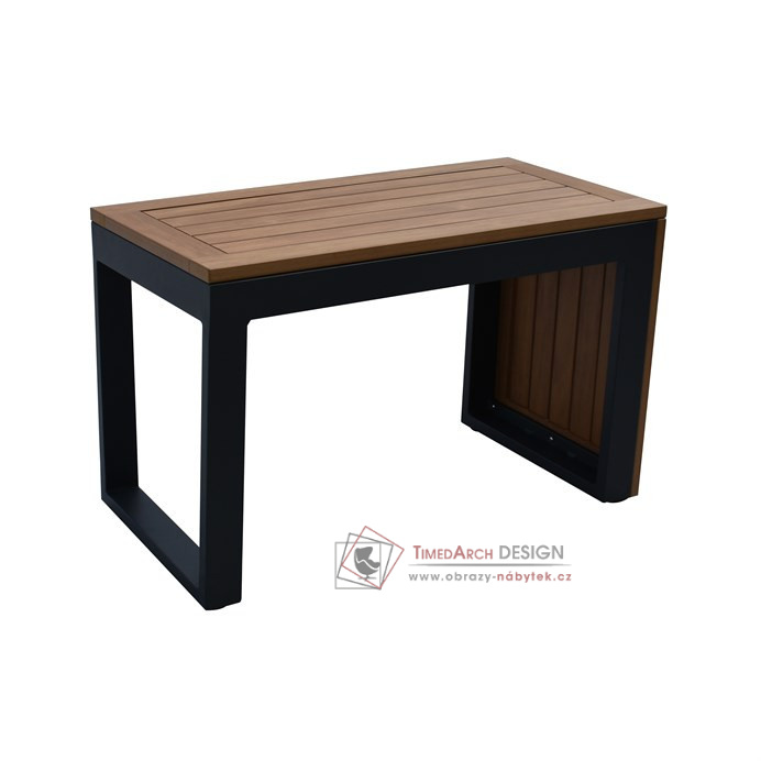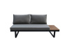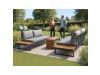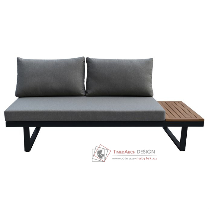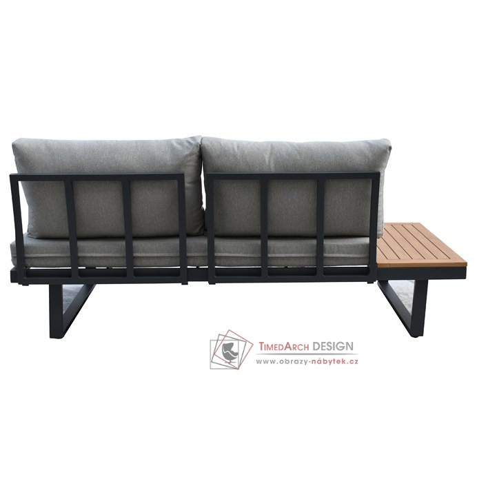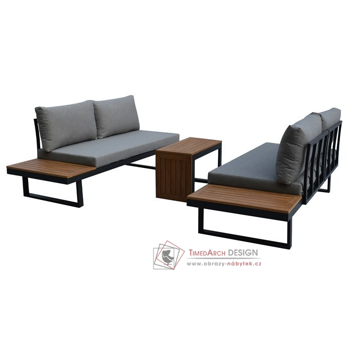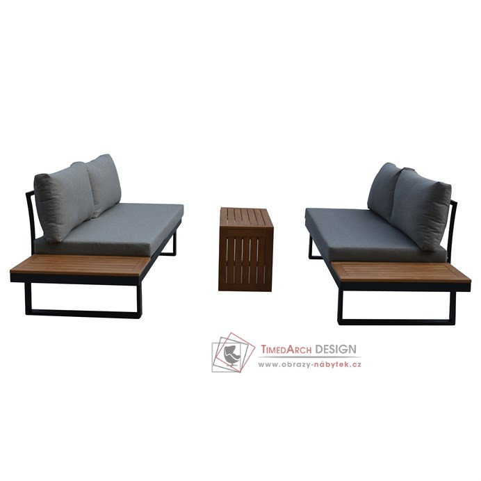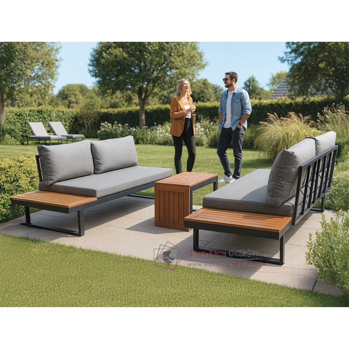 Variabilní konfigurace umožňuje přizpůsobení dle vašich potřeb, což z ní činí ideální volbu pro relaxaci na zahradě či terase. Konstrukce z hliníku s práškovou povrchovou úpravou zajišťuje odolnost a dlouhou životnost, zatímco desky z světle hnědého polywoodu dodávají přírodní vzhled. Hliníková konstrukce se na slunci nenahřívá a nehrozí u ní koroze ani po letech používání. Pohodlné čalounění v šedém odstínu skvěle doplňuje moderní styl sestavy. Součástí je i praktický odkládací prostor, který oceníte při každém venkovním posezení. Obrovskou výhodou této zahradní sestavy je až neuvěřitelná variabilita. Sedačku tvoří dva samostatné stejné díly a díky tomu, že se zádové opěrky jednoduše nasadí na jejich konstrukci, bez šroubování, dokážete si sami během jedné minuty sedačku přeskládat podle aktuální potřeby. Jde tak vytvořit tři druhy rohových sedacích souprav, sestavu, která má dvě sedačky proti sobě, zahradní postel nebo dva otomany. Variabilní je též stolek, který má nožičky jak na kratší, tak delší straně, a může tak sloužit buď jako konferenční stolek, anebo jako stolek servírovací (na výšku).
