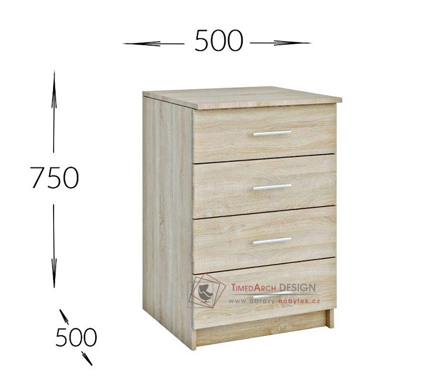 Kontejner k pracovnímu stolu se 4-mi zásuvkami OFFICE je vyrobený z laminované DTD v barevném provedení dub sonoma.