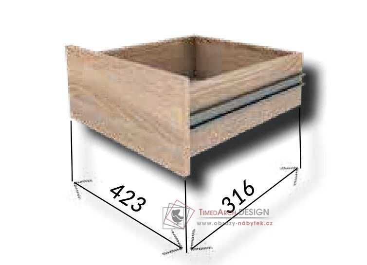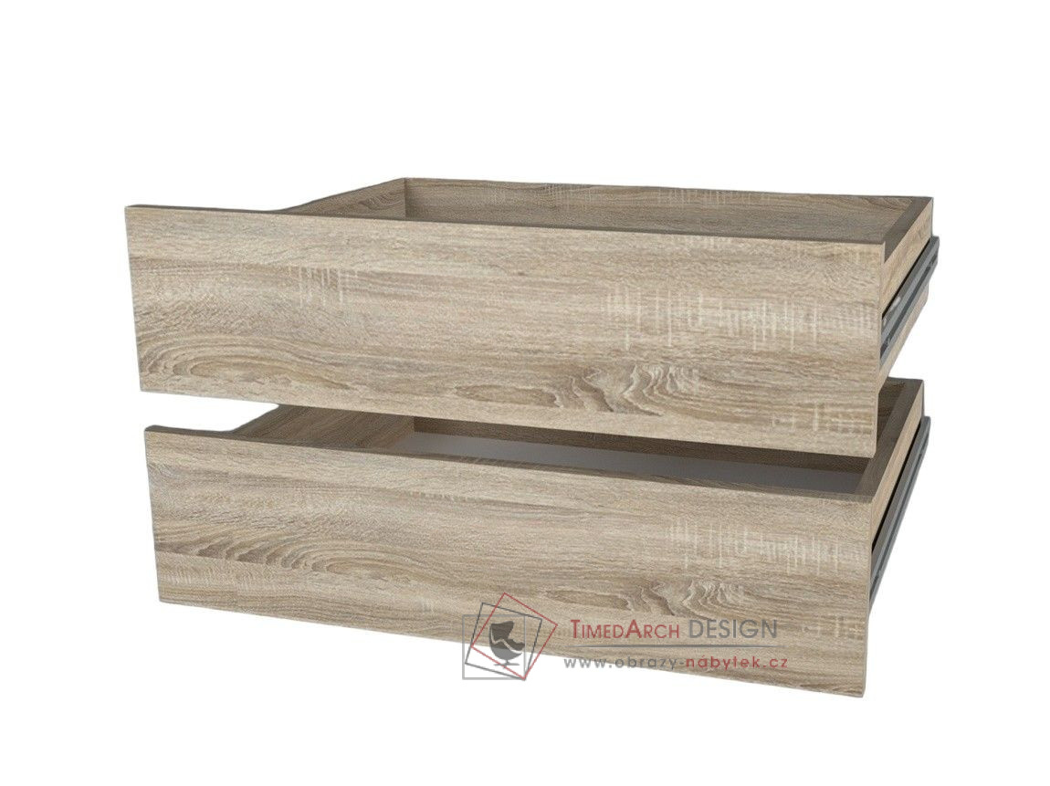 Zásuvky jsou vyrobené z laminované DTD v barevném provedení dub sonoma.