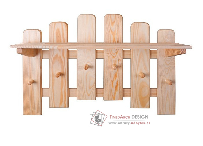 Závěsný věšák s policí SW-131 z řady masivního nábytku je vyrobený z kvalitního borovicového dřeva.