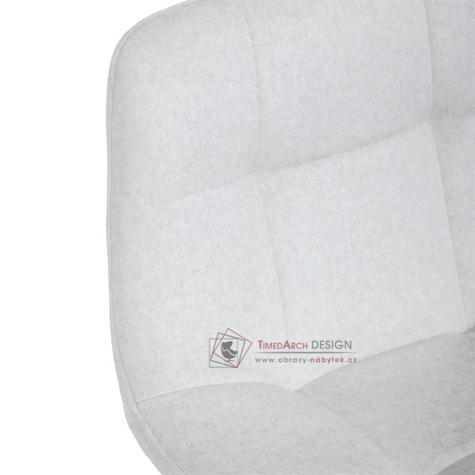 Židle je vyrobena z kvalitní látky, která zajišťuje pohodlí a odolnost. Kovové nohy dodávají pevnost a robustnost. Klíčovým prvkem je funkční opěrka nohou, která usnadňuje dlouhé sezení. Elegantní prošití zad přináší stylový vzhled, který snadno zapadne do každého interiéru.