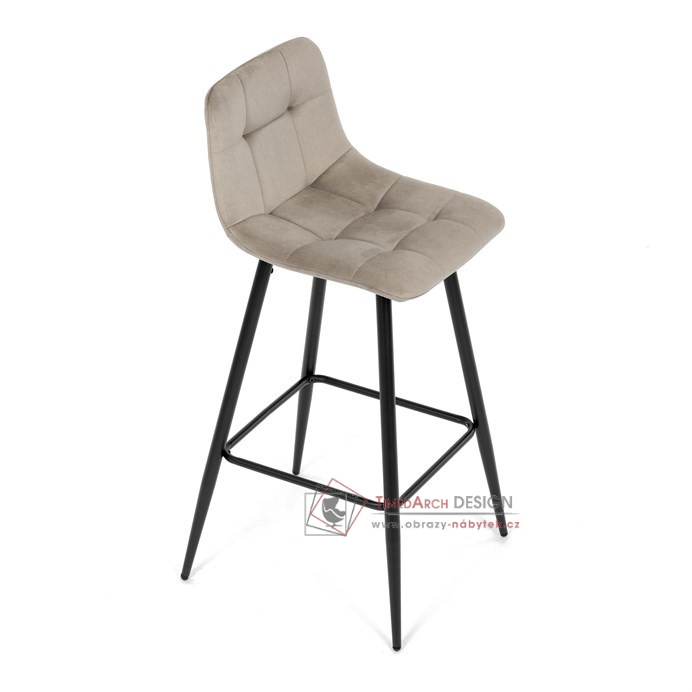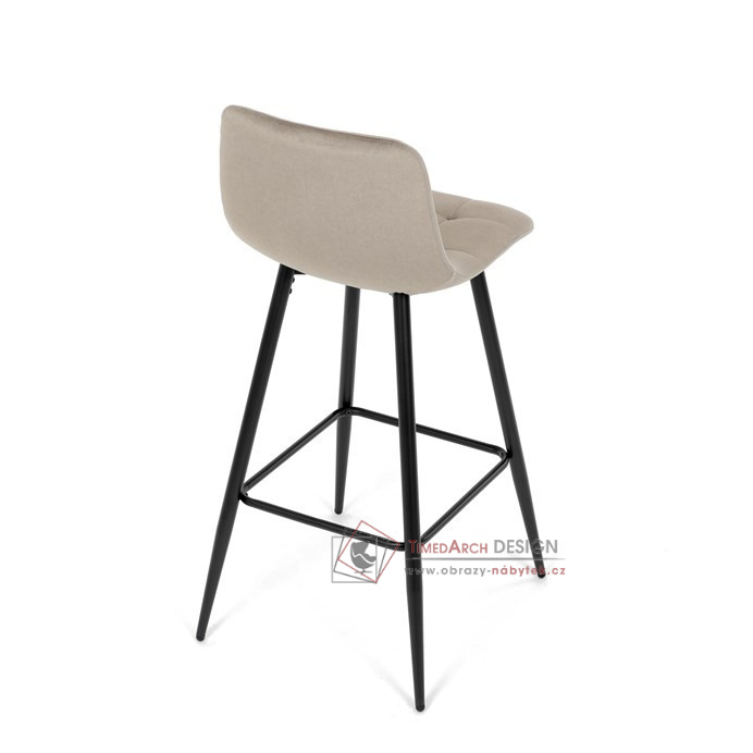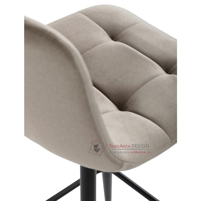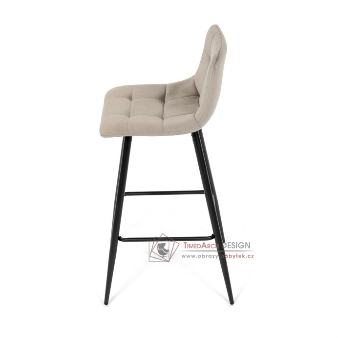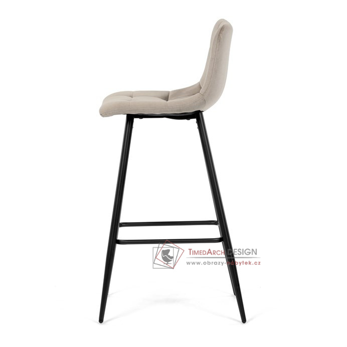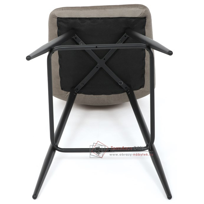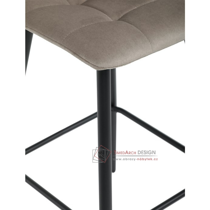 Židle je vyrobena z kvalitní látky, která zajišťuje pohodlí a odolnost. Kovové nohy dodávají pevnost a robustnost. Klíčovým prvkem je funkční opěrka nohou, která usnadňuje dlouhé sezení. Elegantní prošití zad přináší stylový vzhled, který snadno zapadne do každého interiéru.
