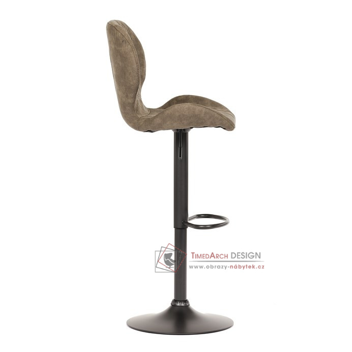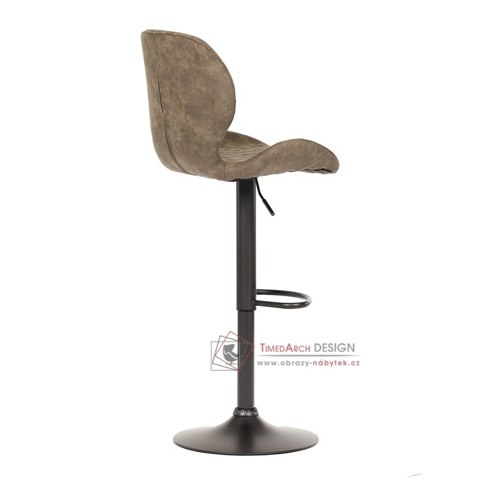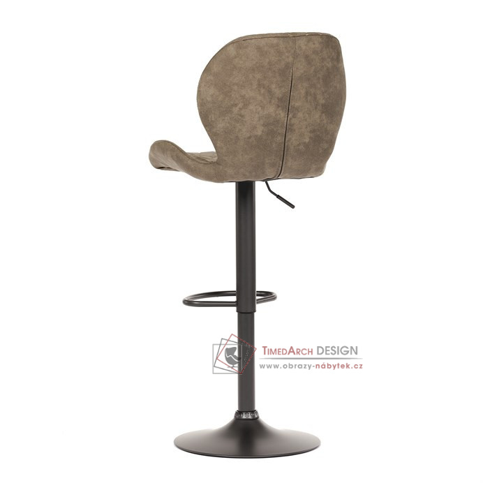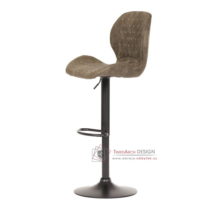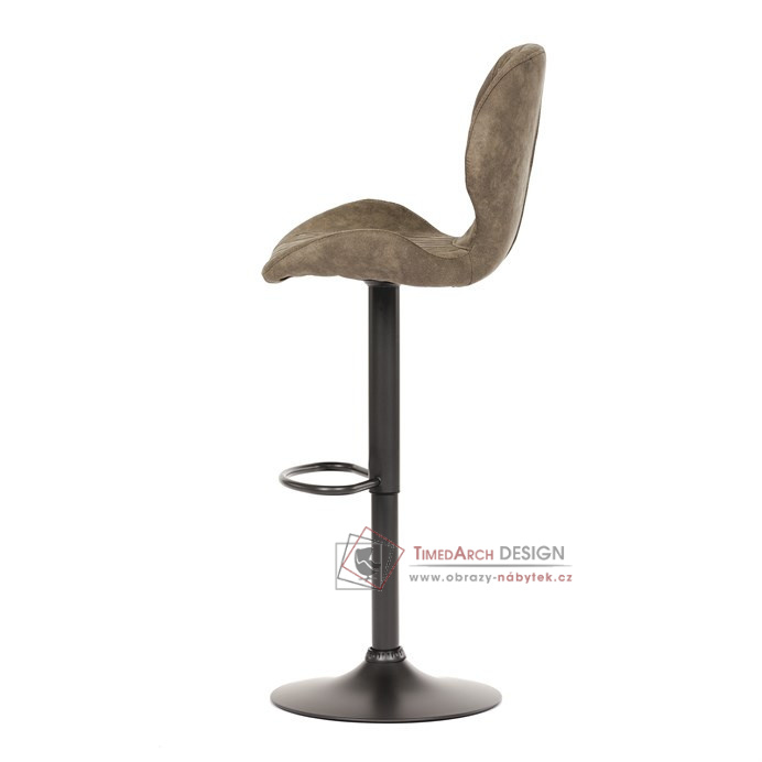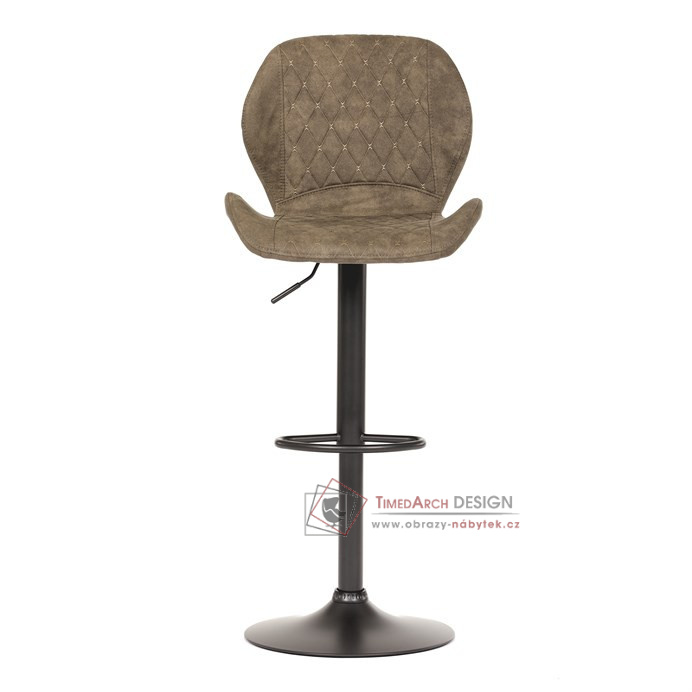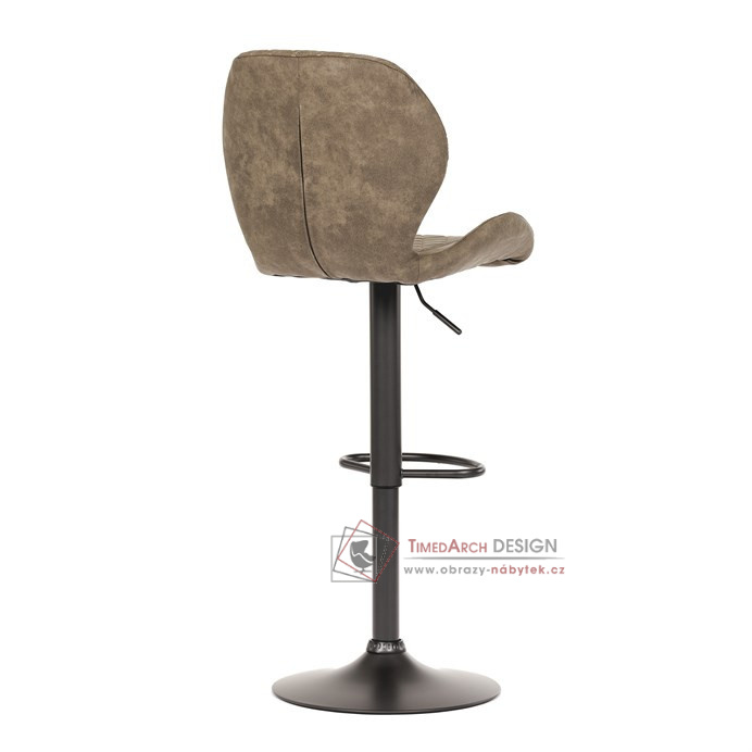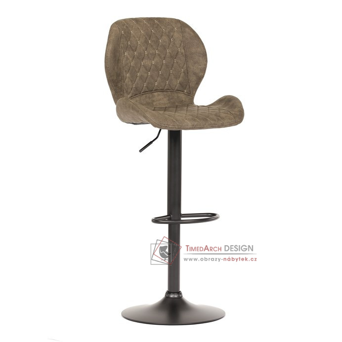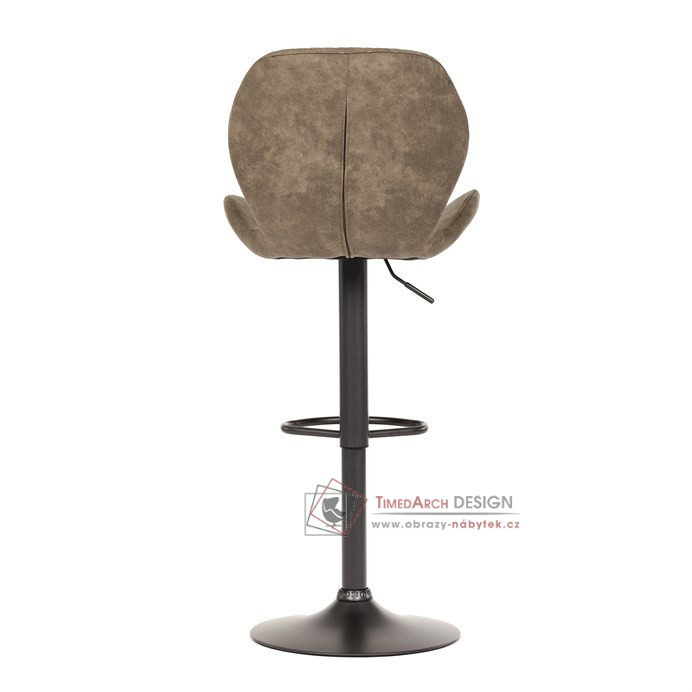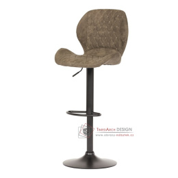 Barová židle vyrobená z odolného kovu se pyšní robustní základnou s černými kovovými nohami a nabízí stabilitu a styl při každém doušku oblíbeného koktejlu. Vintage potah látka v sytě hnědé barvě přispívá k atmosféře sofistikovanosti a umocňuje eleganci barového pultu nebo kuchyňské linky.