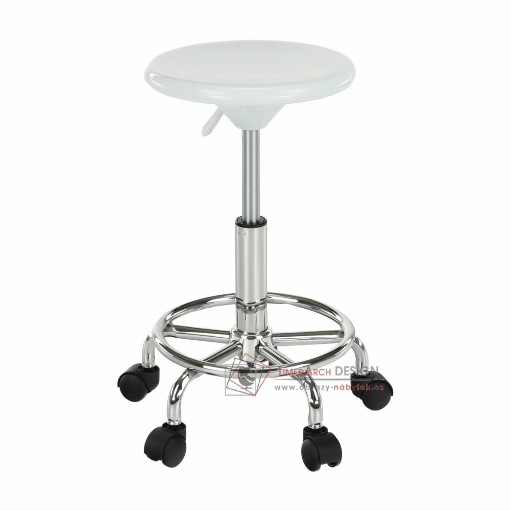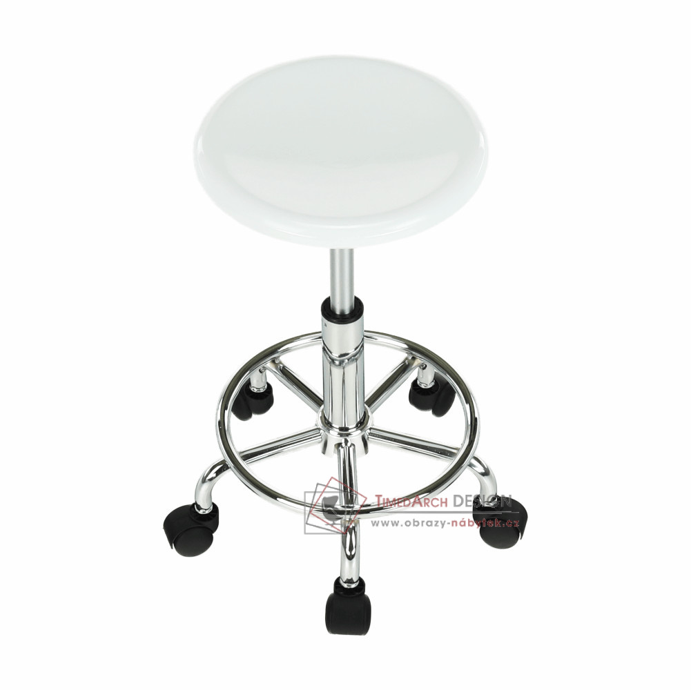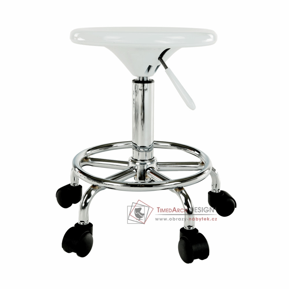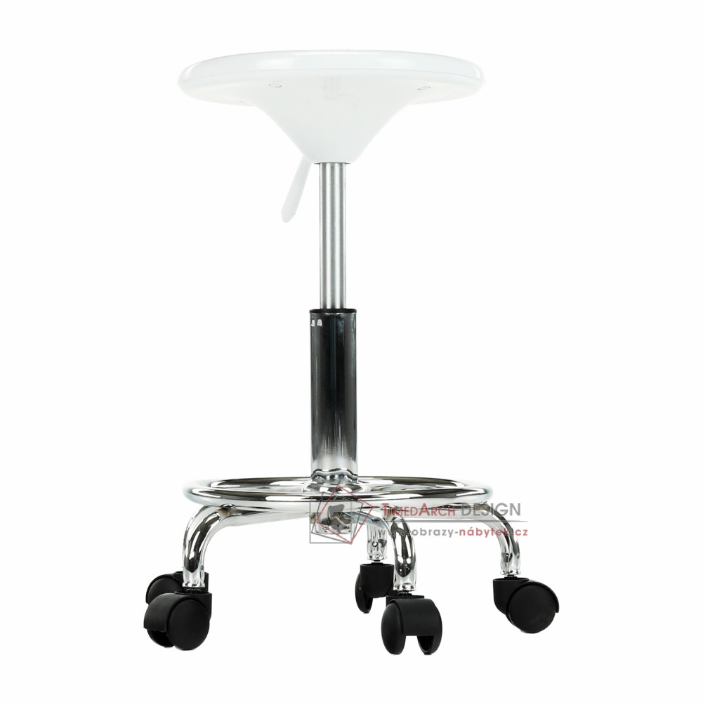 Židle - taburet na kolečkách s nastavitelnou výškou MABEL 4 NEW Materiál: ABS plast/chrom Barva: bílá/chrom Rozměry (ŠxHxV): 35x35x43-55 cm Výška sedu: 43-55 cm Hloubka sedu: 32,5 cm Šířka sedu: 32,5 cm Nosnost: 100 kg Výškově nastavitelná S kolečky Dodáváno v demontu