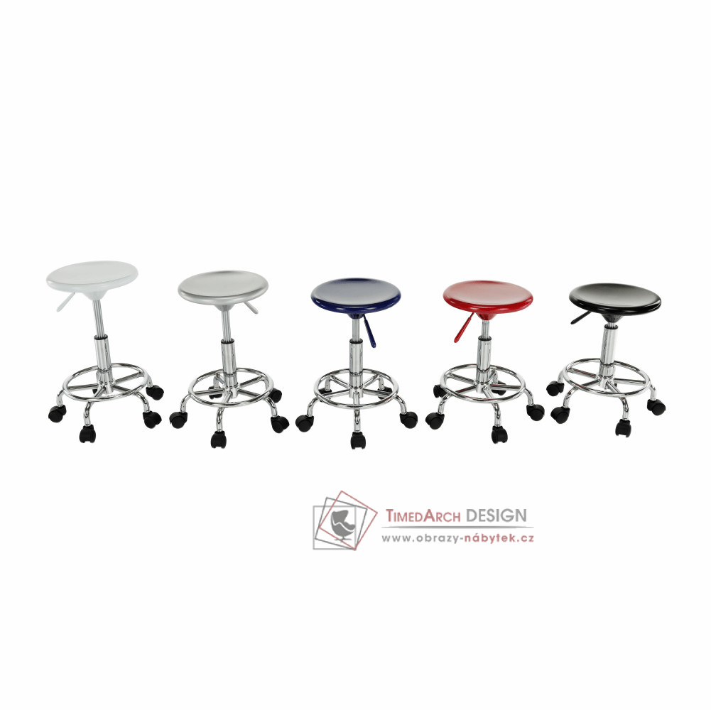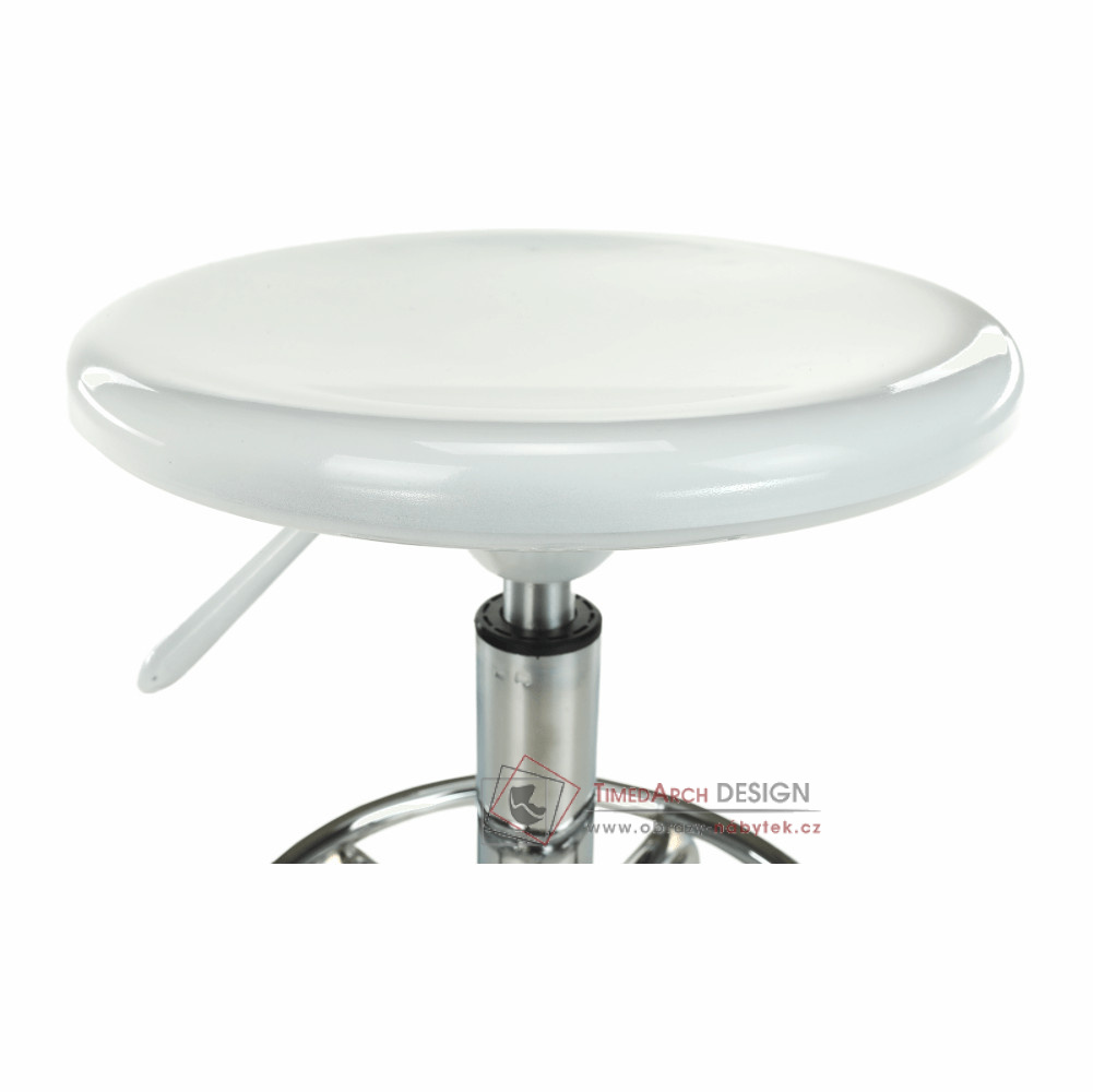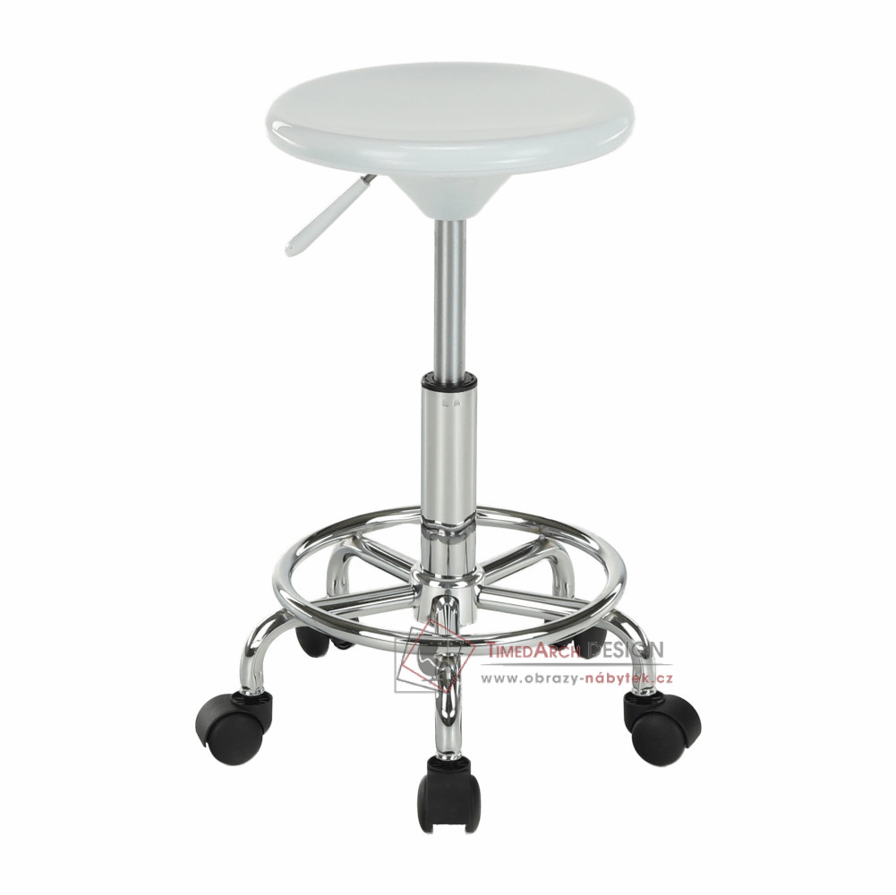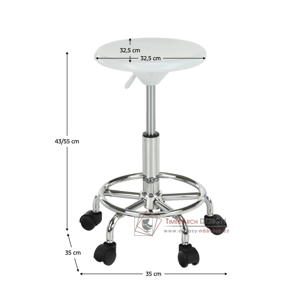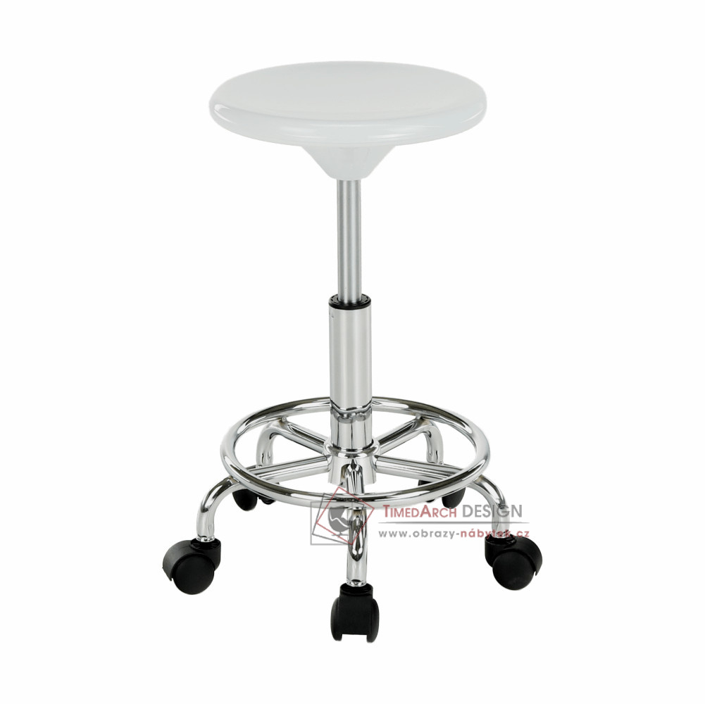 Židle - taburet na kolečkách s nastavitelnou výškou MABEL 4 NEW Materiál: ABS plast/chrom Barva: bílá/chrom Rozměry (ŠxHxV): 35x35x43-55 cm Výška sedu: 43-55 cm Hloubka sedu: 32,5 cm Šířka sedu: 32,5 cm Nosnost: 100 kg Výškově nastavitelná S kolečky Dodáváno v demontu