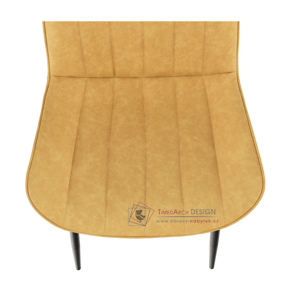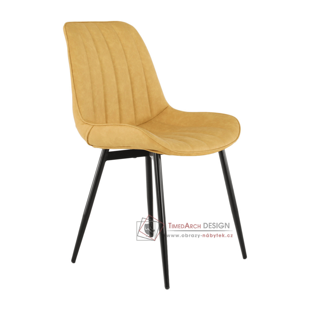 Dekorativní šití dodává židli pocit lehkosti a modernosti. Vyrobena je z kovu v černé barvě a čalouněná je kvalitní ekokůží v provedení žlutá. Předností ekokůže je snadné čištění a dlouhá životnost. Prožijte nejkrásnější části dne se svou rodinou a židlí Hazal.
