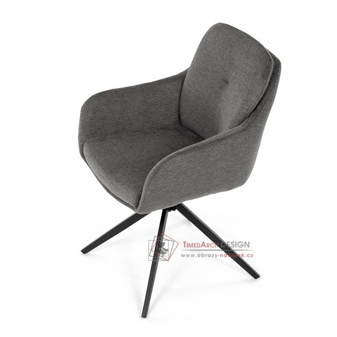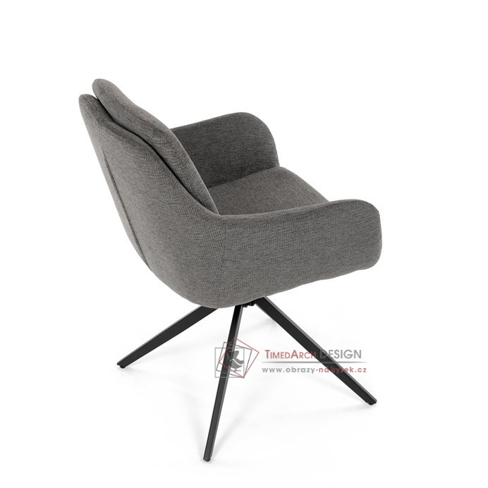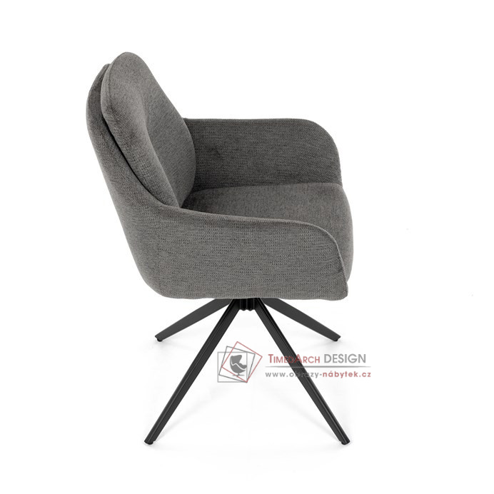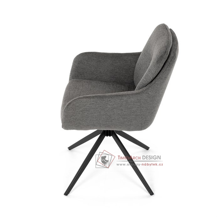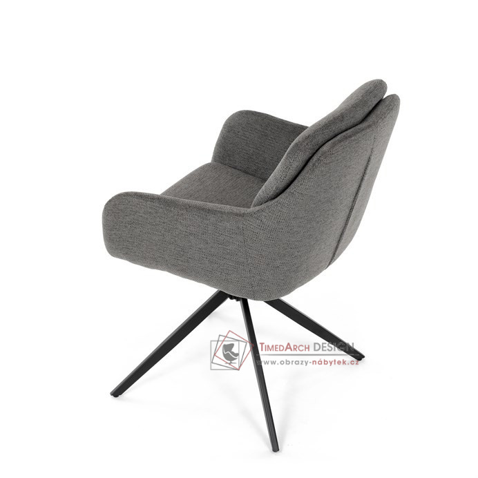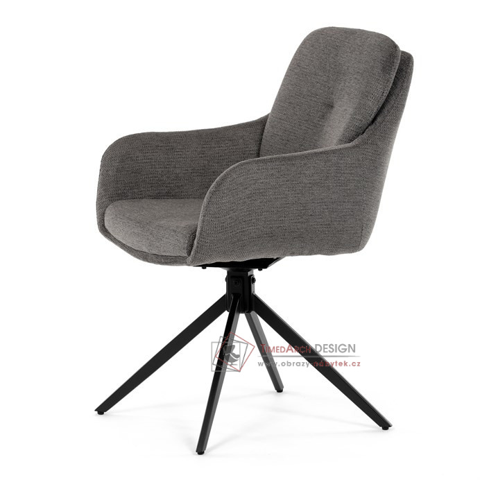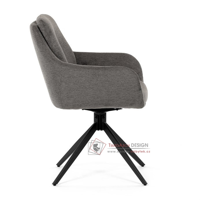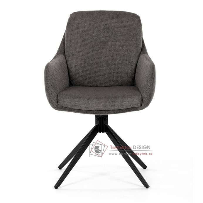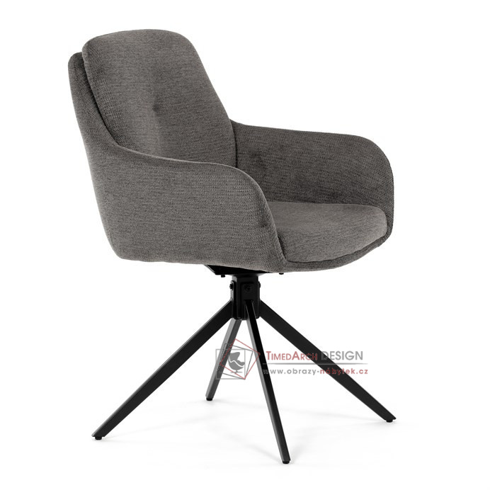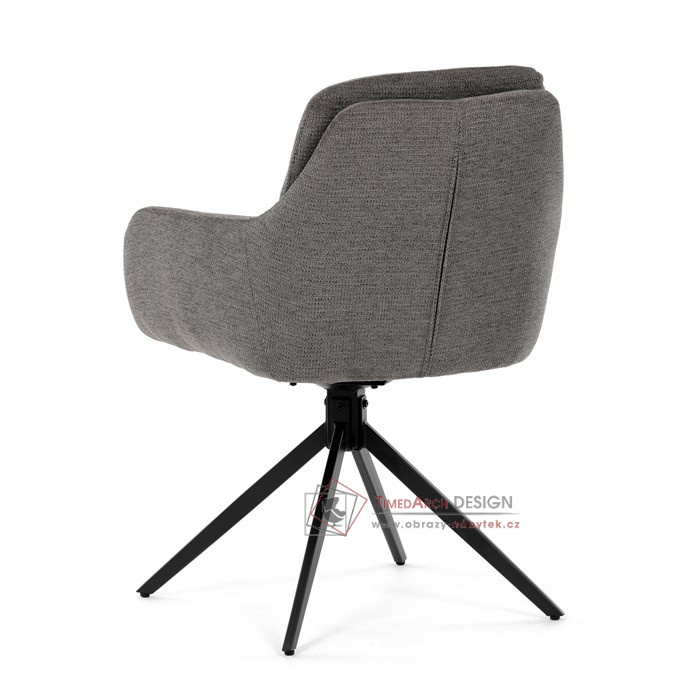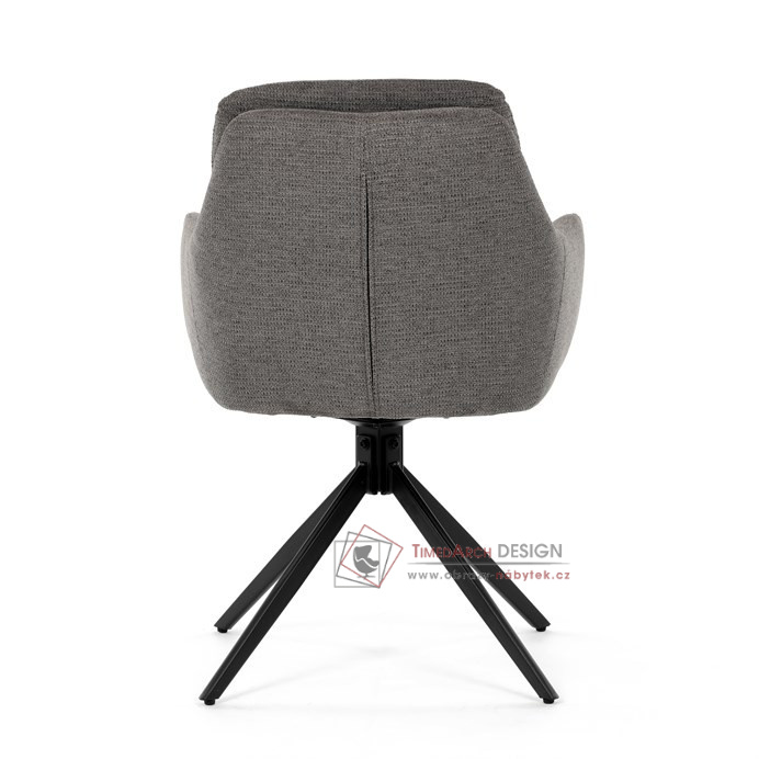 Jemně hrubý potah z voděodolné látky zajišťuje praktické využití a snadnou údržbu, zatímco pružinové vlnovce v sedáku poskytují pohodlné posezení i při delším používání. Stabilní kovová podnož s obdélníkovým profilem v černé barvě dodávají křeslu minimalistický vzhled. Otočný mechanismus s vratnou funkcí a dvojitý opěrák zajišťují maximální funkčnost a flexibilitu. Ideální volba pro každou moderní jídelnu hledající dokonalou kombinaci stylu a praktičnosti.