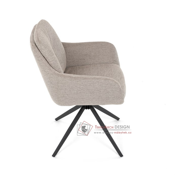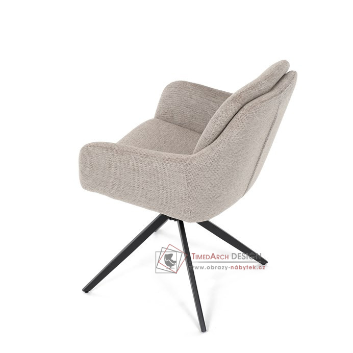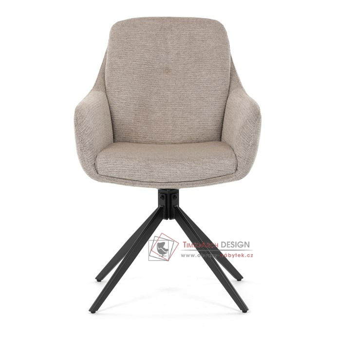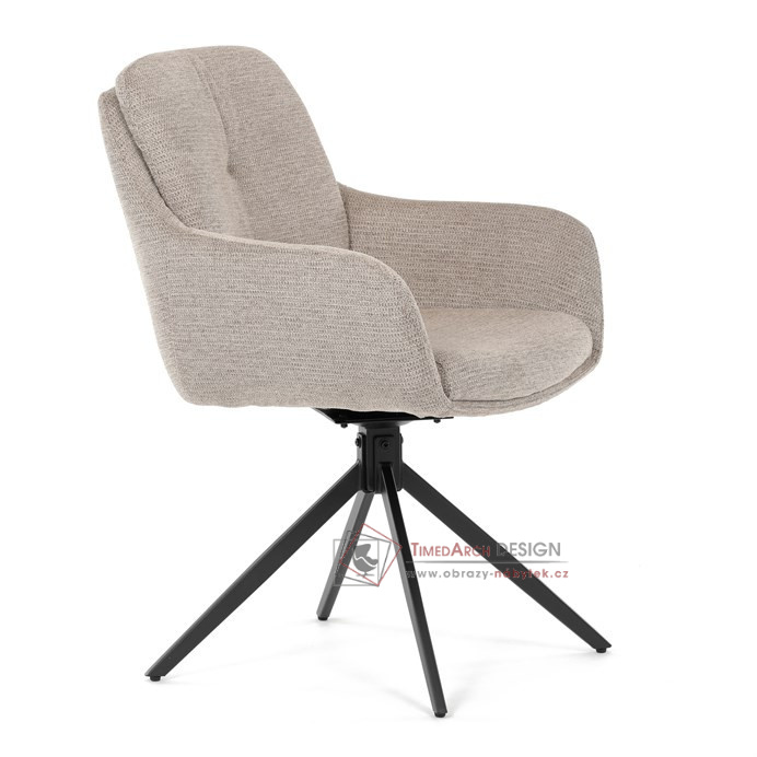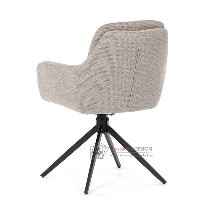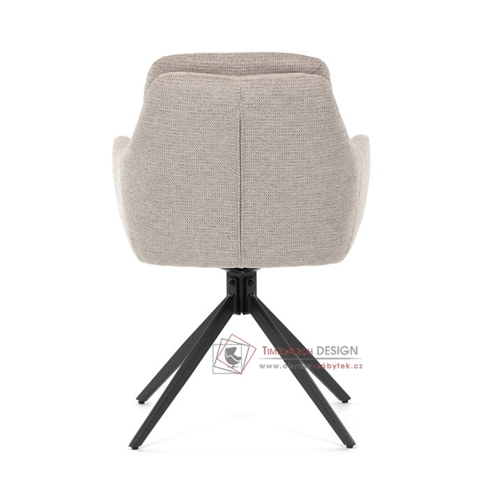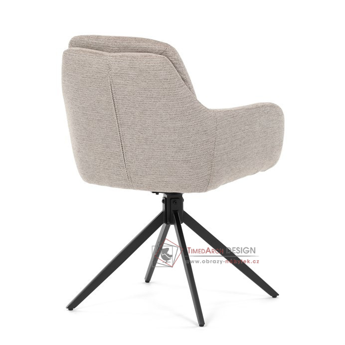 Jemně hrubý potah z voděodolné látky zajišťuje praktické využití a snadnou údržbu, zatímco pružinové vlnovce v sedáku poskytují pohodlné posezení i při delším používání. Stabilní kovová podnož s obdélníkovým profilem v černé barvě dodávají křeslu minimalistický vzhled. Otočný mechanismus s vratnou funkcí a dvojitý opěrák zajišťují maximální funkčnost a flexibilitu. Ideální volba pro každou moderní jídelnu hledající dokonalou kombinaci stylu a praktičnosti.