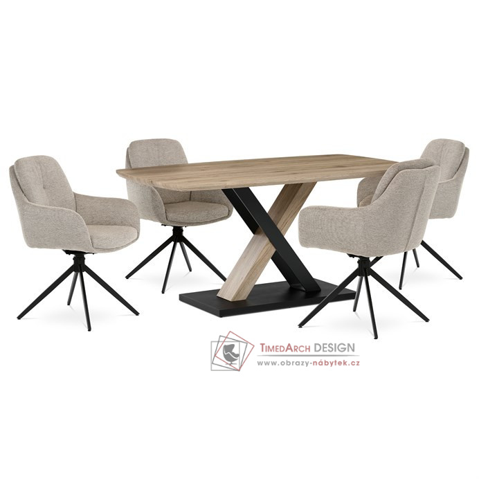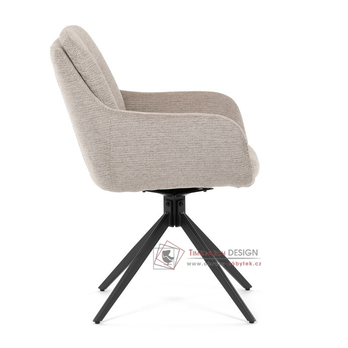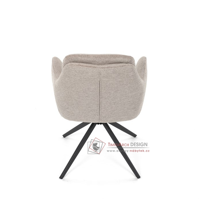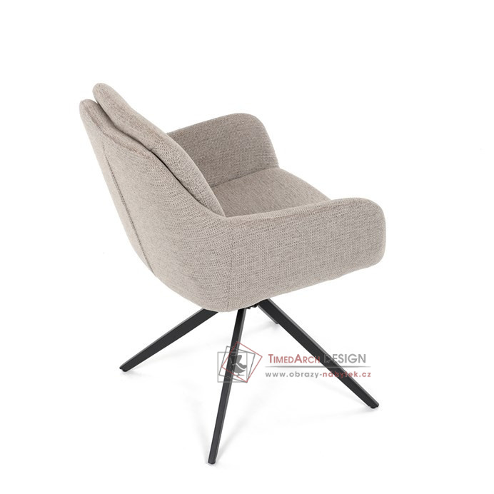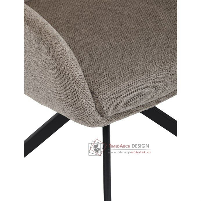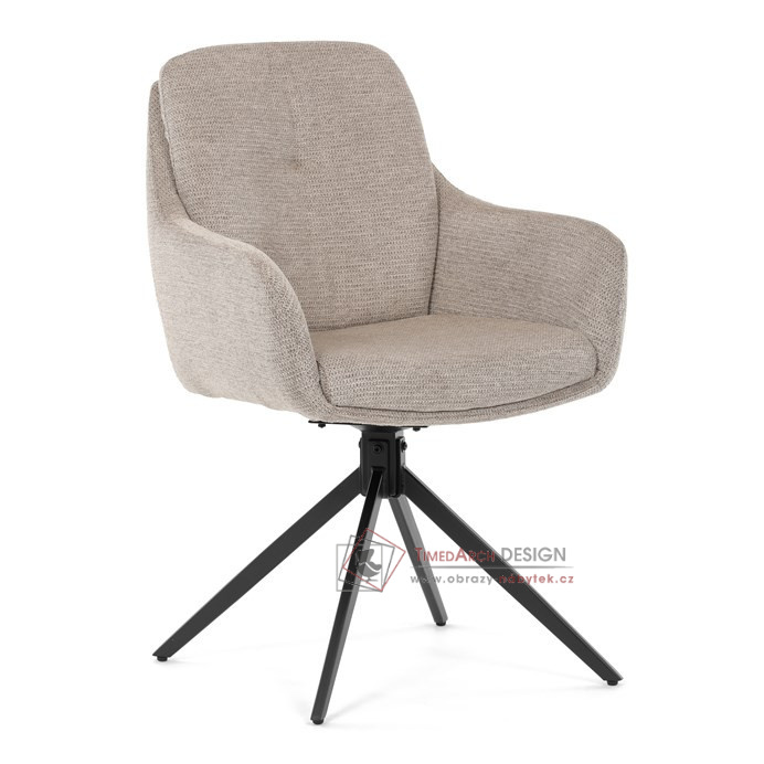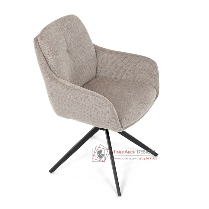 Jemně hrubý potah z voděodolné látky zajišťuje praktické využití a snadnou údržbu, zatímco pružinové vlnovce v sedáku poskytují pohodlné posezení i při delším používání. Stabilní kovová podnož s obdélníkovým profilem v černé barvě dodávají křeslu minimalistický vzhled. Otočný mechanismus s vratnou funkcí a dvojitý opěrák zajišťují maximální funkčnost a flexibilitu. Ideální volba pro každou moderní jídelnu hledající dokonalou kombinaci stylu a praktičnosti.