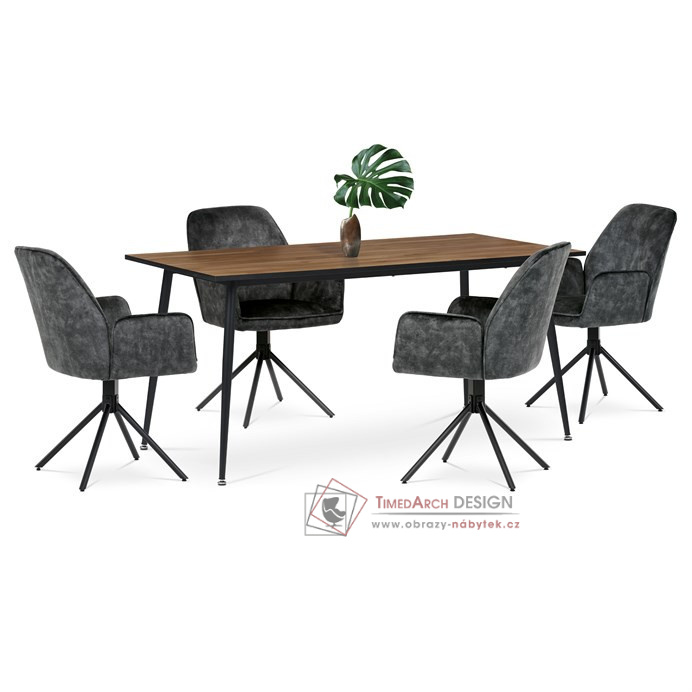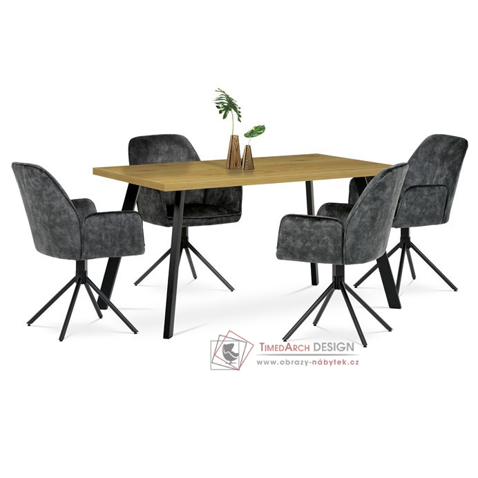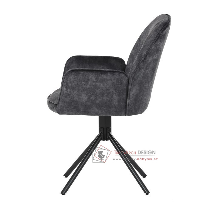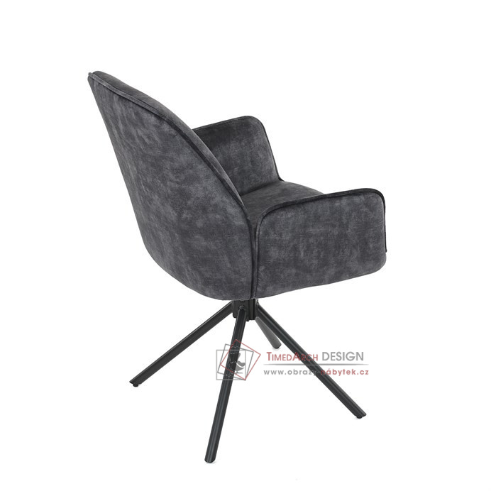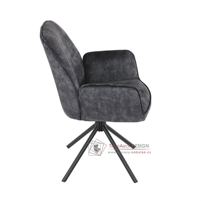 Elegantní jídelní židle s područkami v čalounění ze žíhaného sametu.