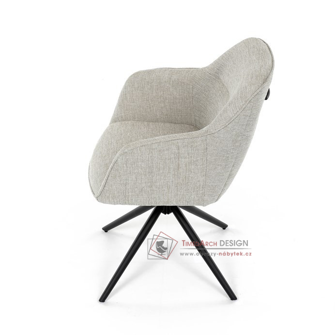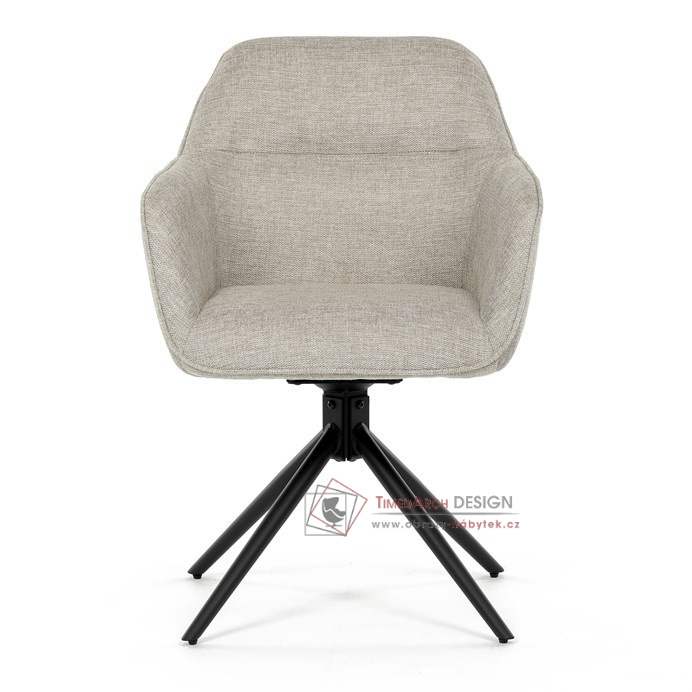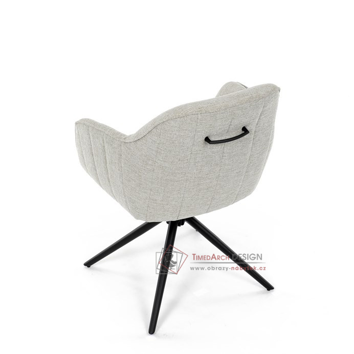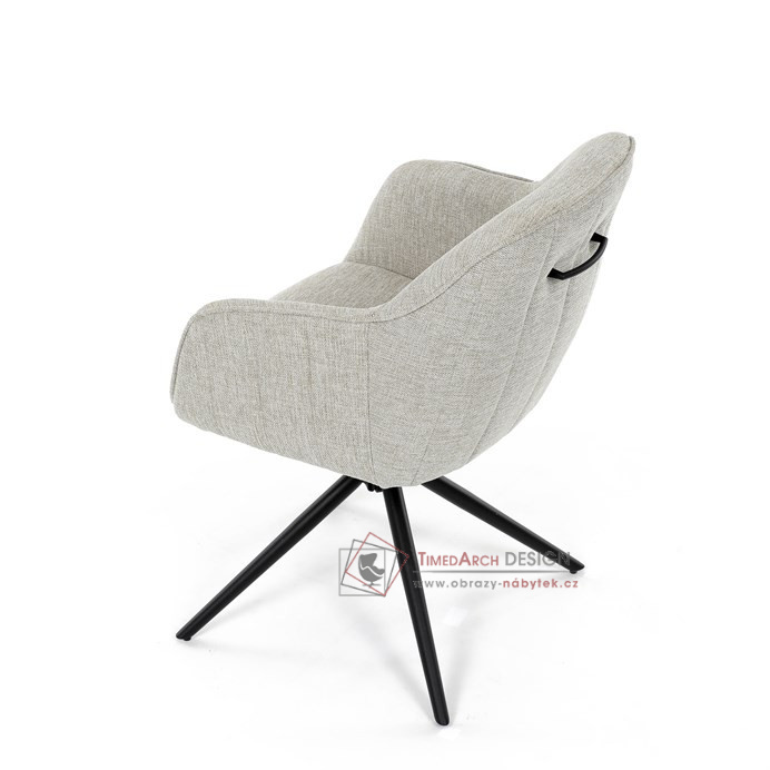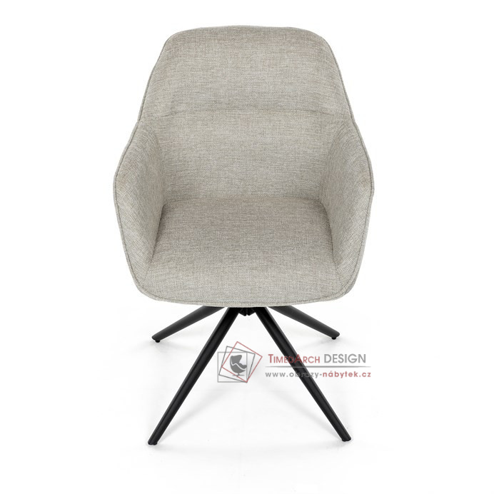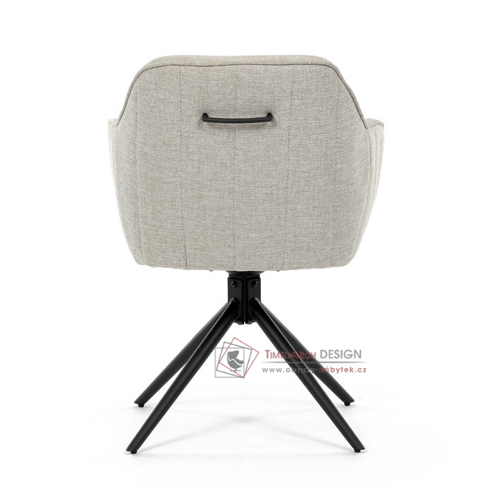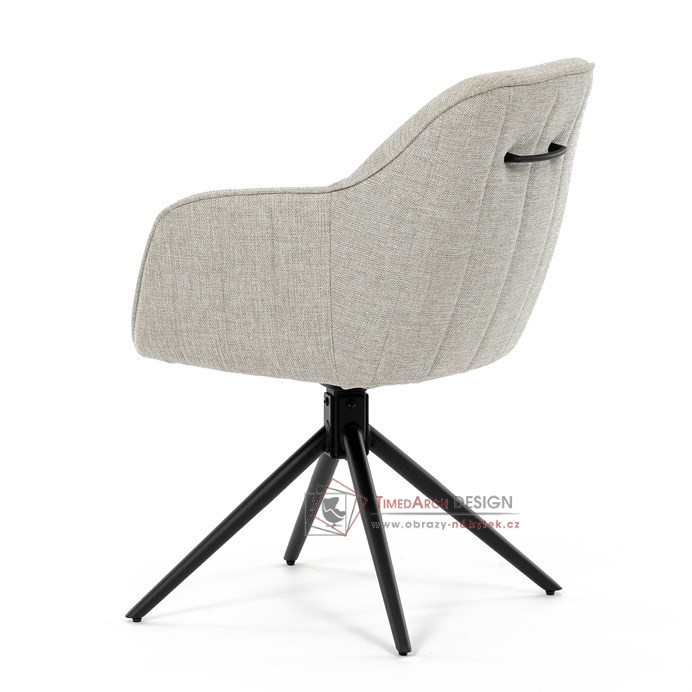 Prošití je v barvě potahového materiálu. Zadní část opěráku je opatřena vkusným madlem pro snazší manipulaci. Čtyři kovové nohy v matném práškovém nástřiku vycházejí z centrálního bodu ve středu sedáku. Sedák je otočný o 180° s tvarovou pamětí.