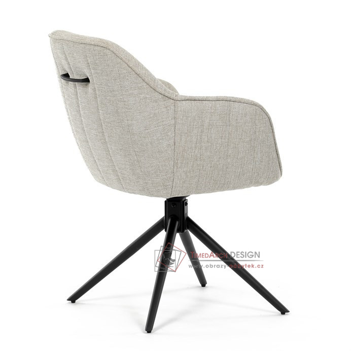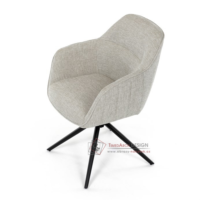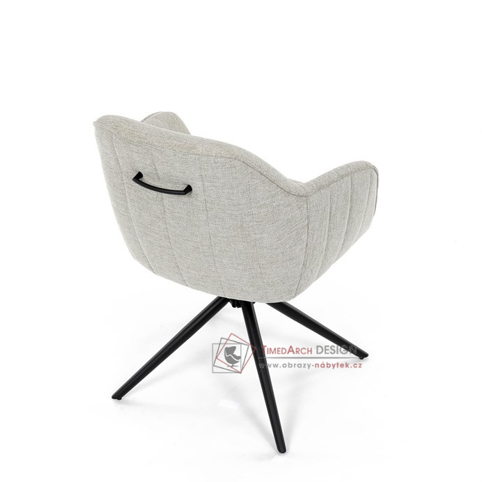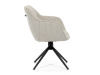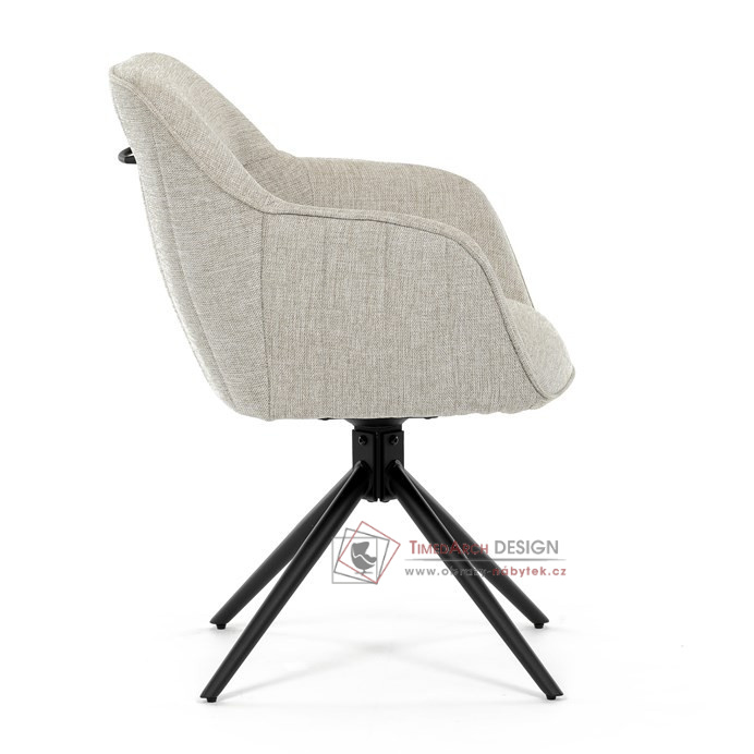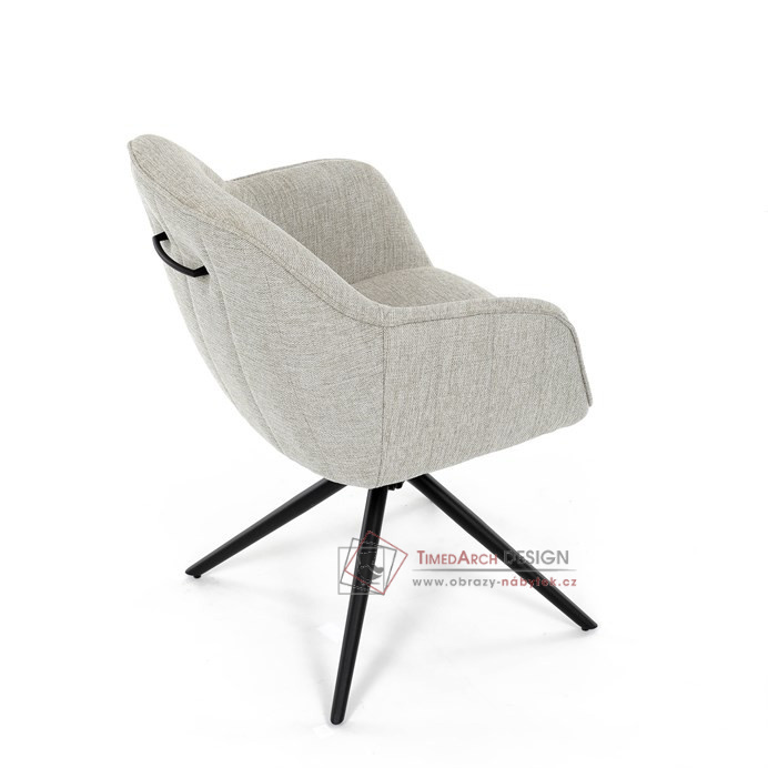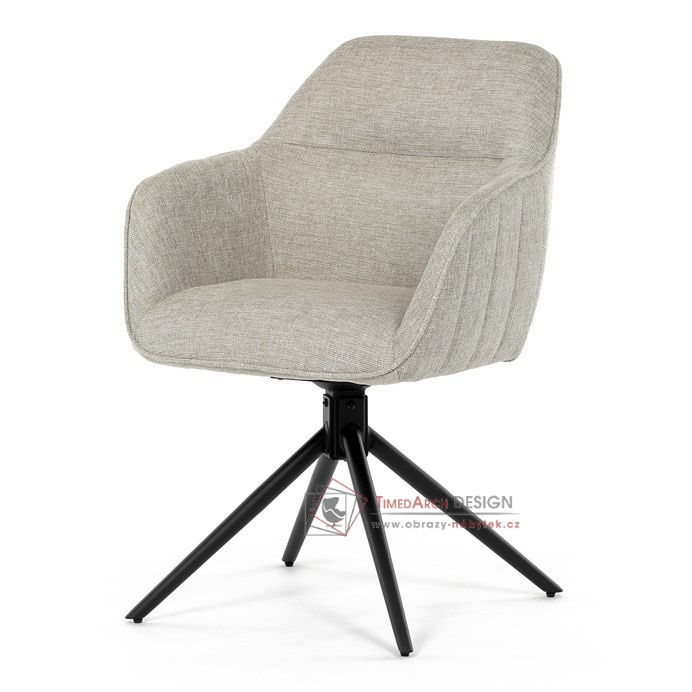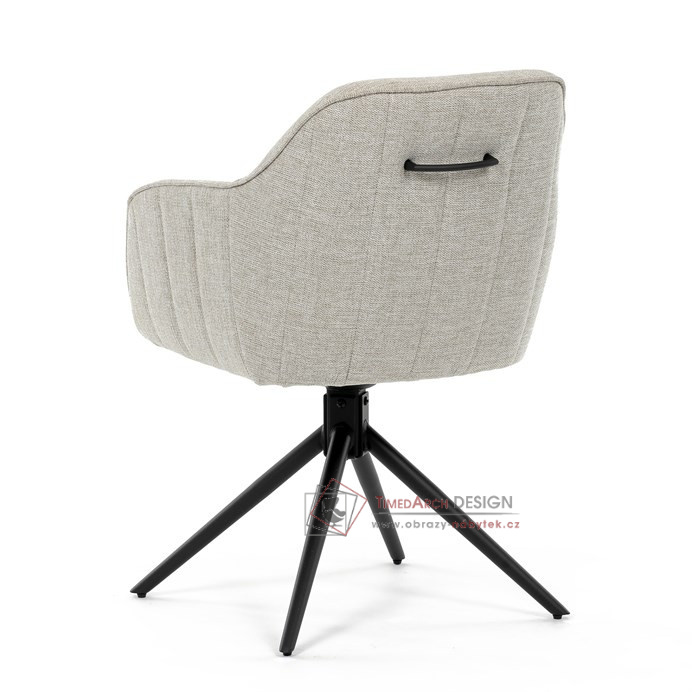 Prošití je v barvě potahového materiálu. Zadní část opěráku je opatřena vkusným madlem pro snazší manipulaci. Čtyři kovové nohy v matném práškovém nástřiku vycházejí z centrálního bodu ve středu sedáku. Sedák je otočný o 180° s tvarovou pamětí.
