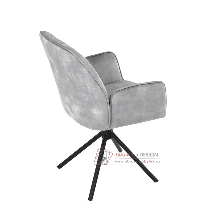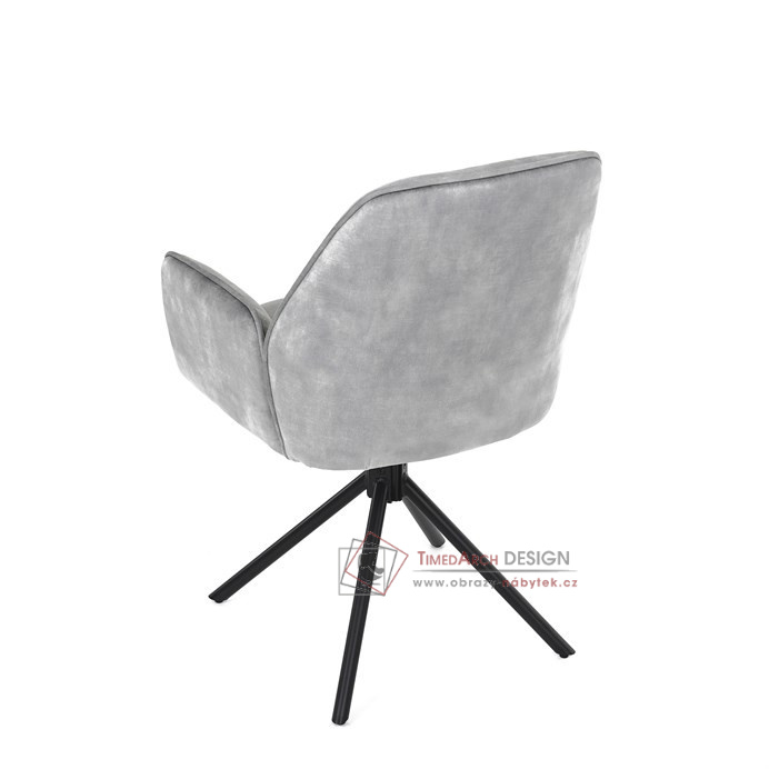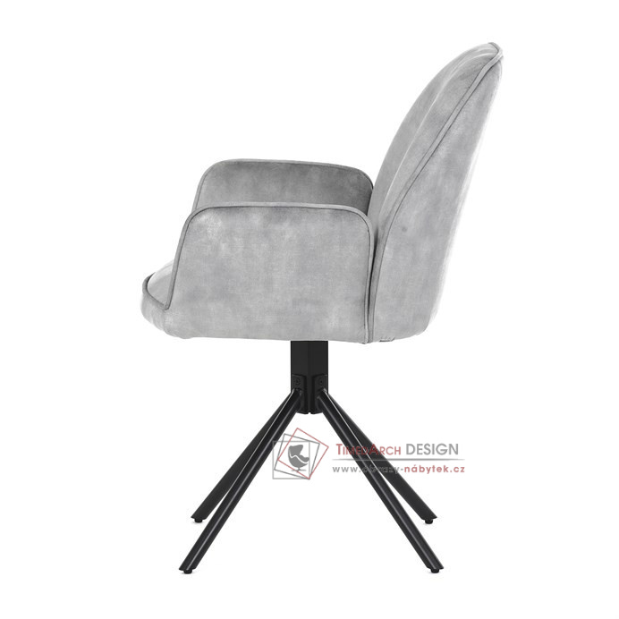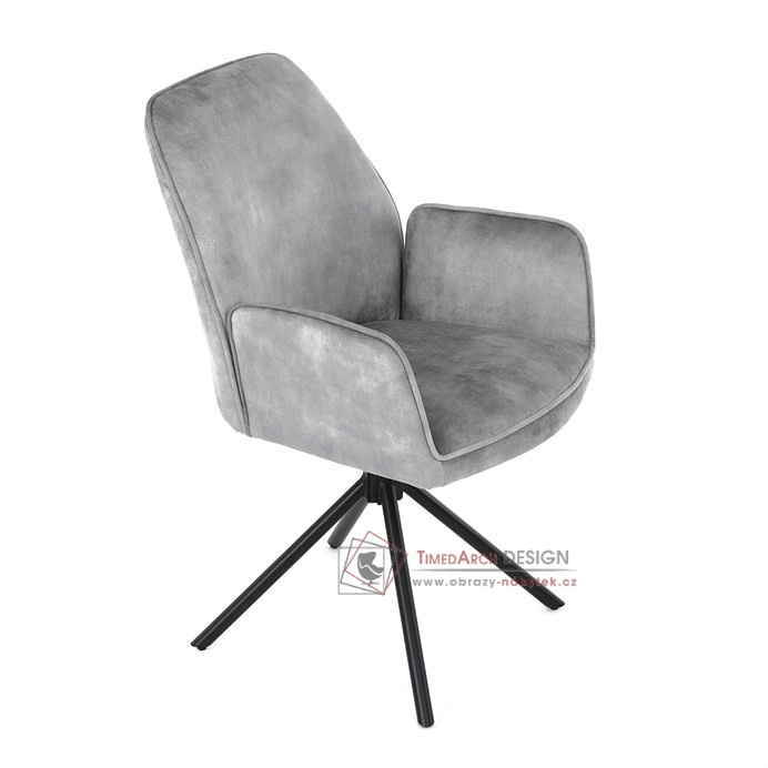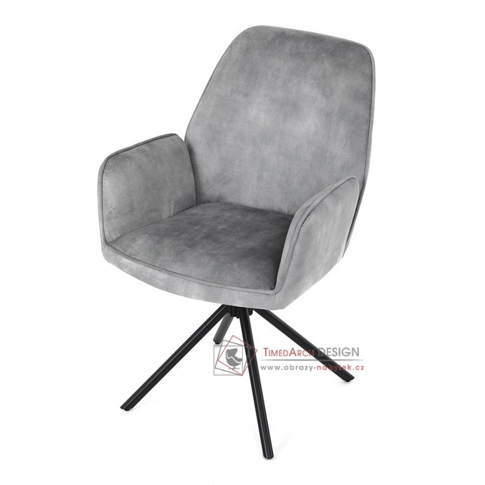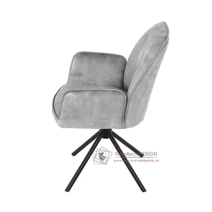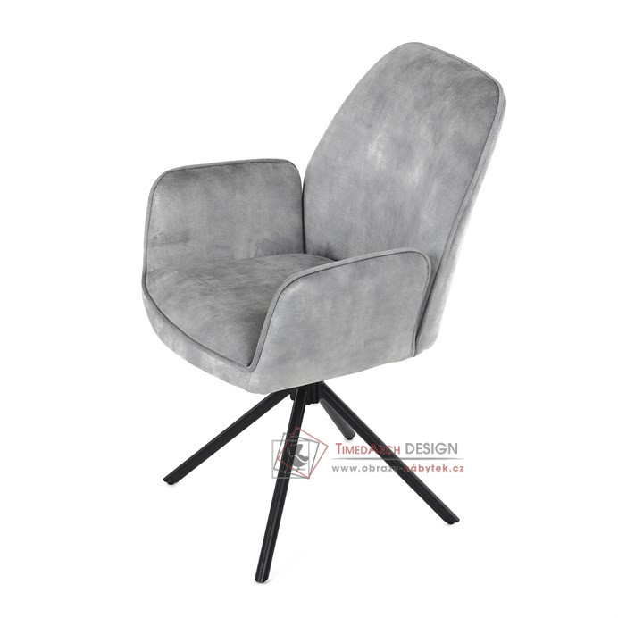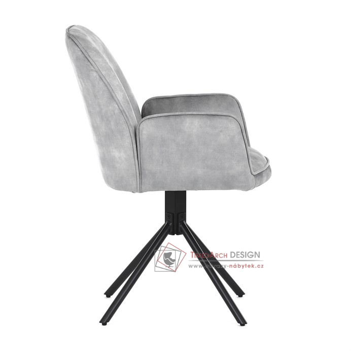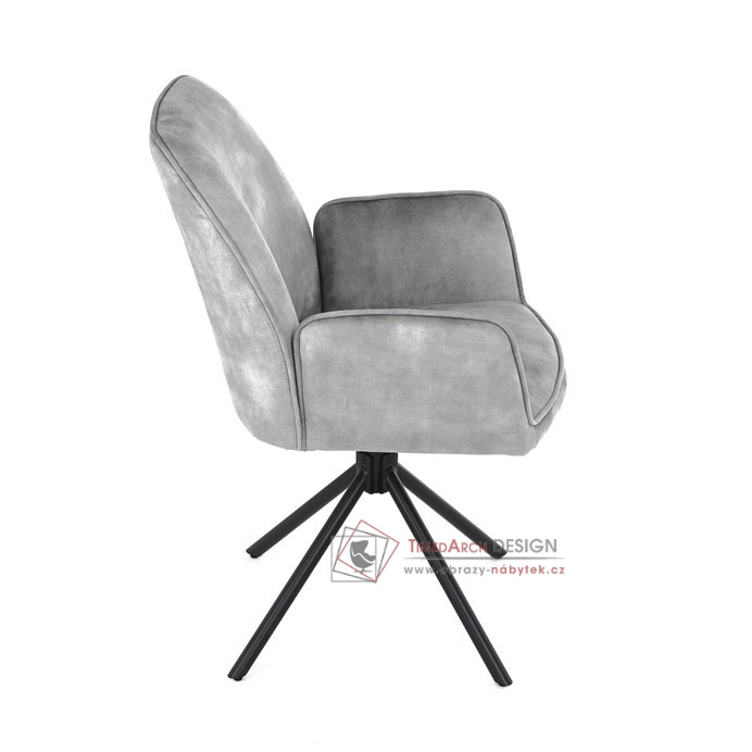 Elegantní jídelní židle s područkami v čalounění ze žíhaného sametu.