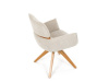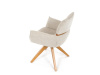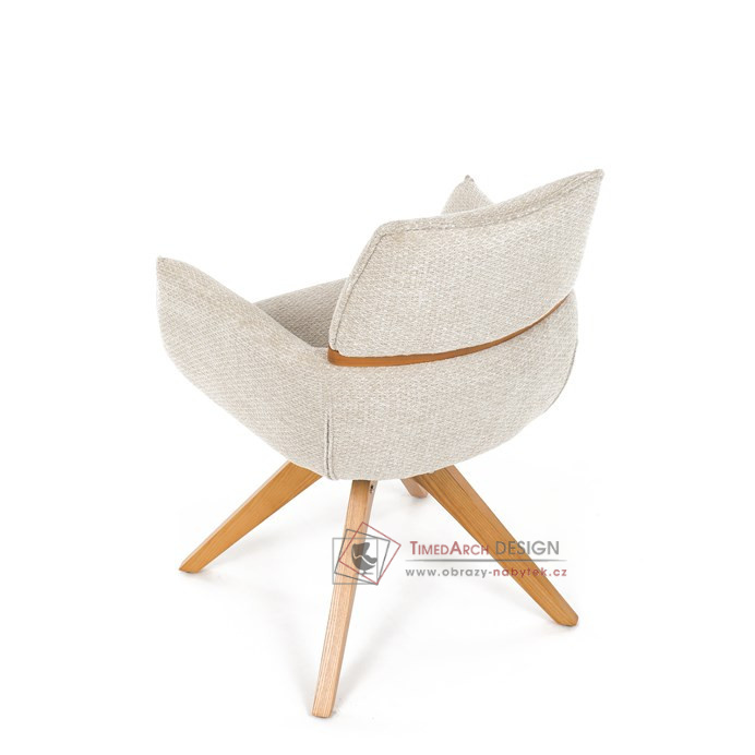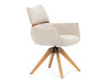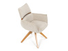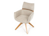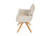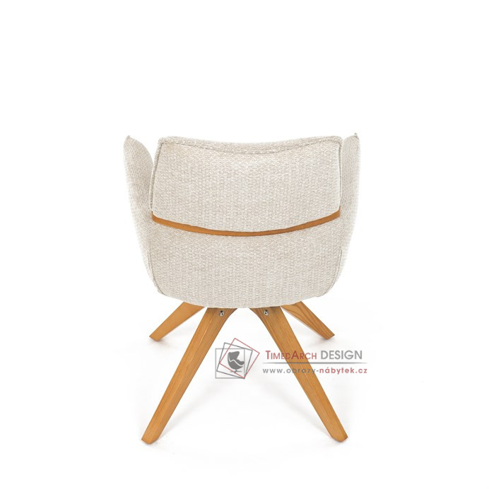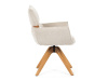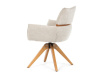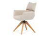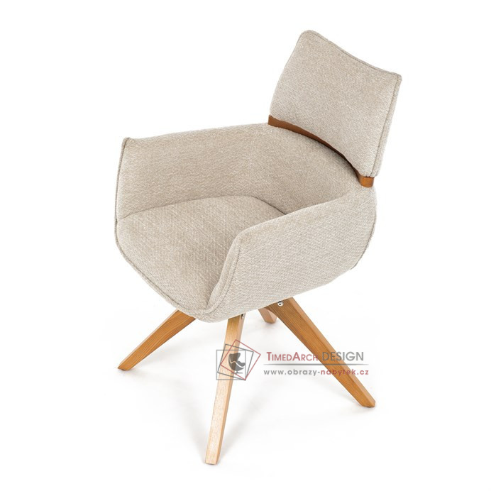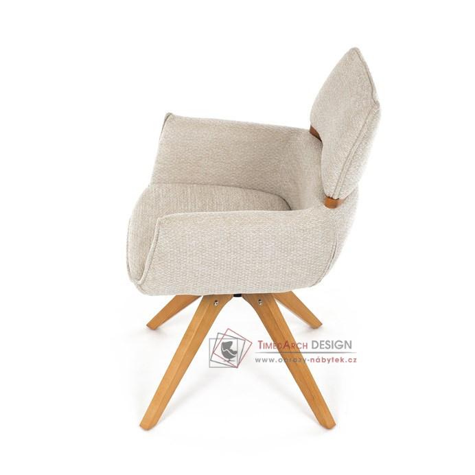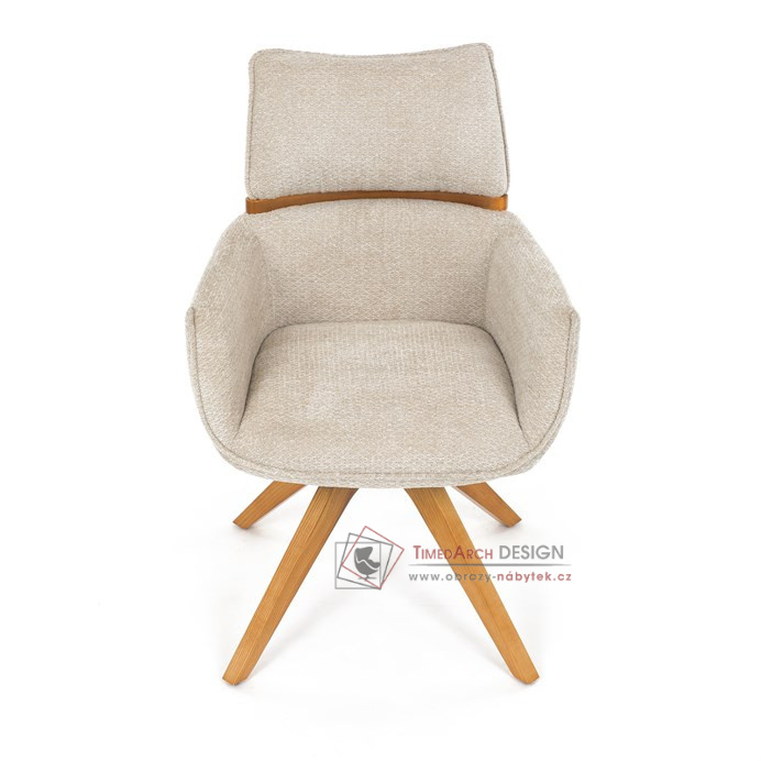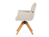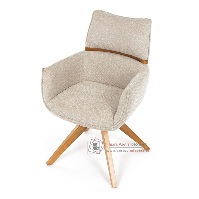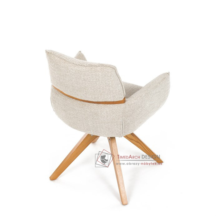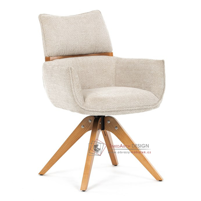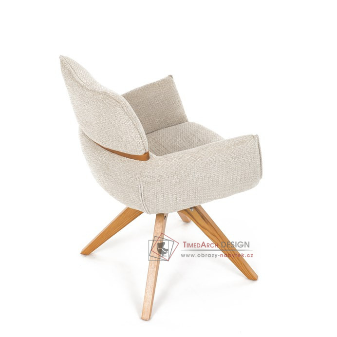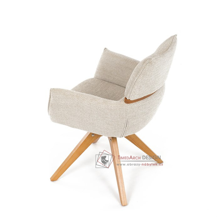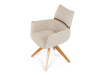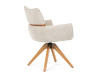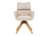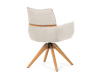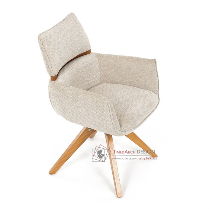 Jeho čalounění z hladké látky v kombinaci s měkkou PU pěnou poskytuje maximální komfort. Stabilitu zajišťují masivní dřevěné nohy v přírodním odstínu, který podtrhuje skandinávský styl. Díky otočné funkci o 360° s vratným mechanismem nabízí flexibilitu při sezení. Područky a dekorativní masivní prvky dodávají židli sofistikovaný vzhled. Ideální doplněk do moderní jídelny, který spojuje zábavu a praktičnost.