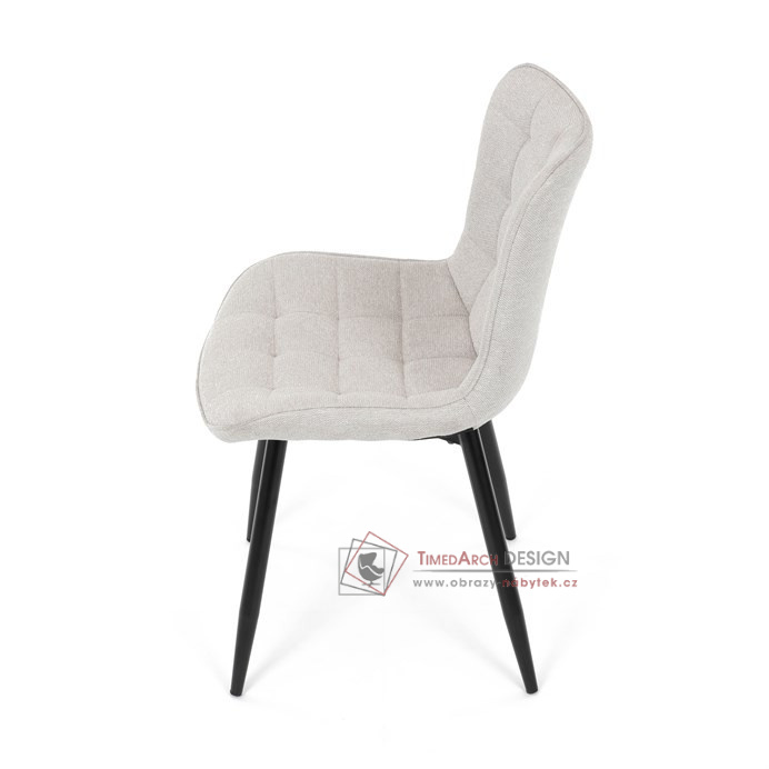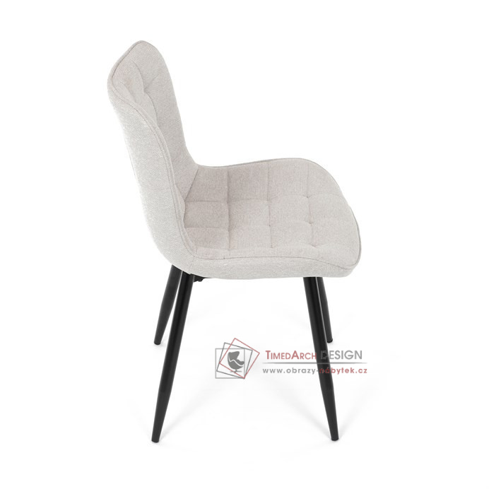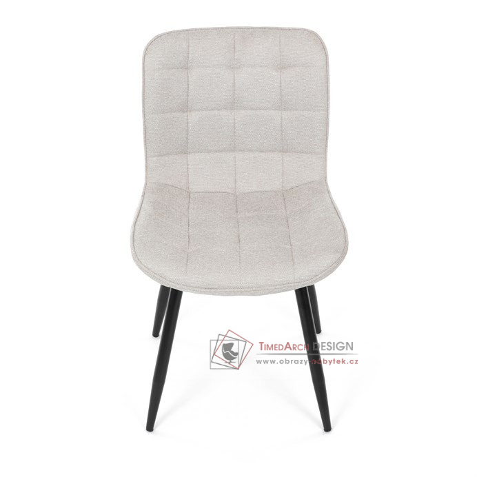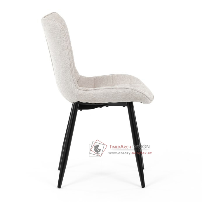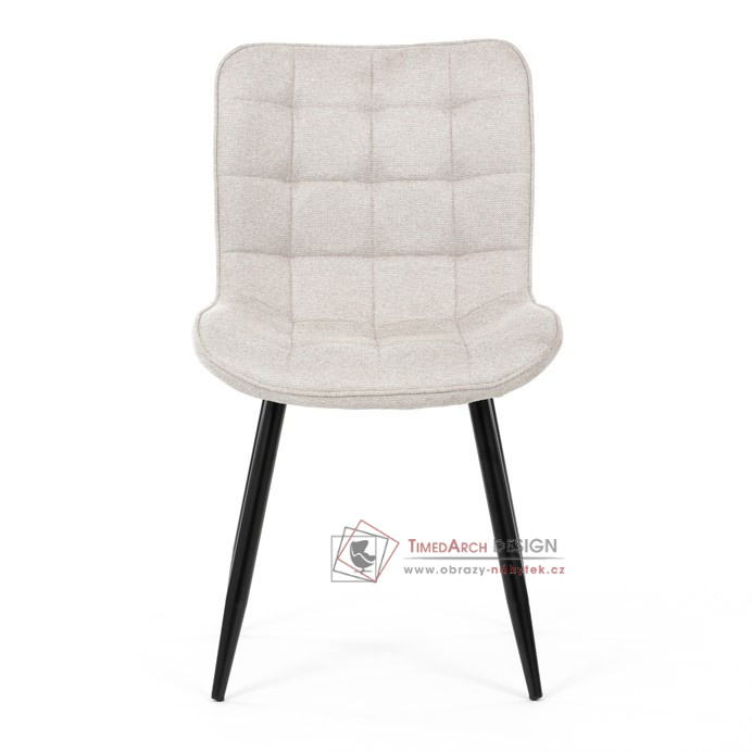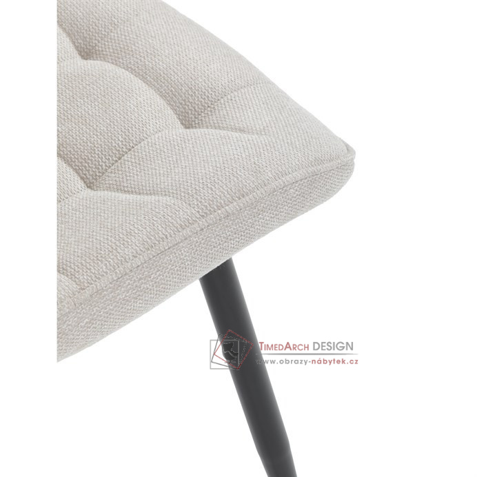 Béžové čalounění z kvalitní látky je nejen příjemné na dotek, ale díky ozdobnému prošití do čtverců také vyniká esteticky. Stabilitu a trvanlivost zajišťují kovové nohy, které dodávají moderní vzhled a dlouhou životnost. Tato židle bez područek kombinuje funkčnost a styl pro každý interiér.