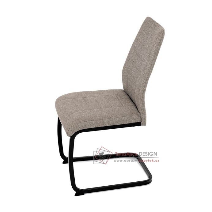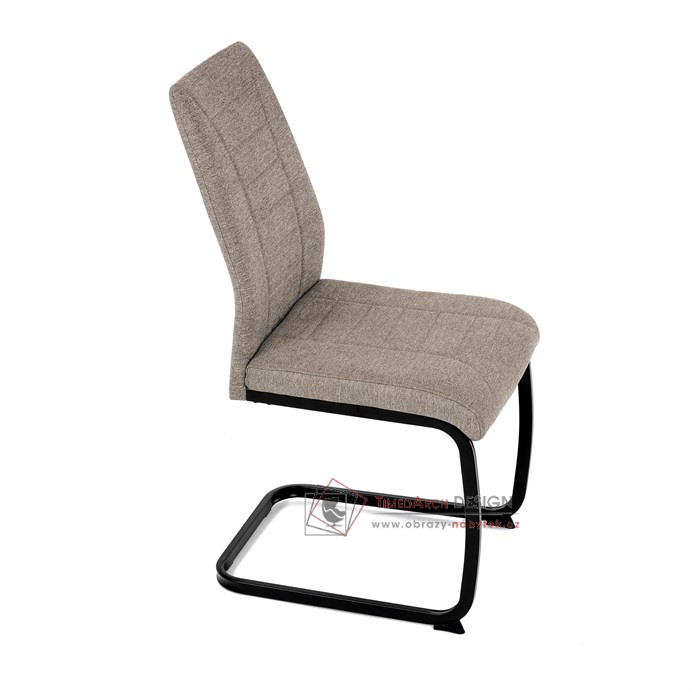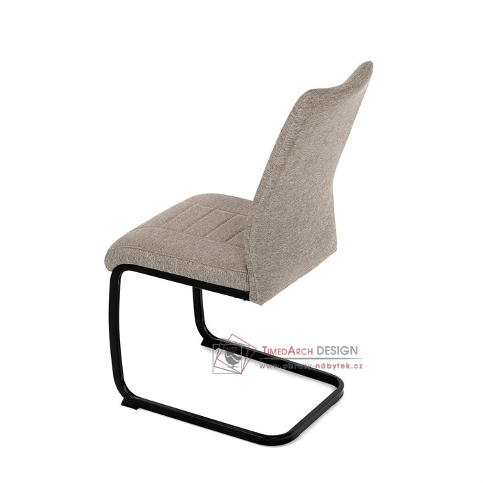 Atraktívní jídelní židle na kovové, pohupové podnoži černé barvy.