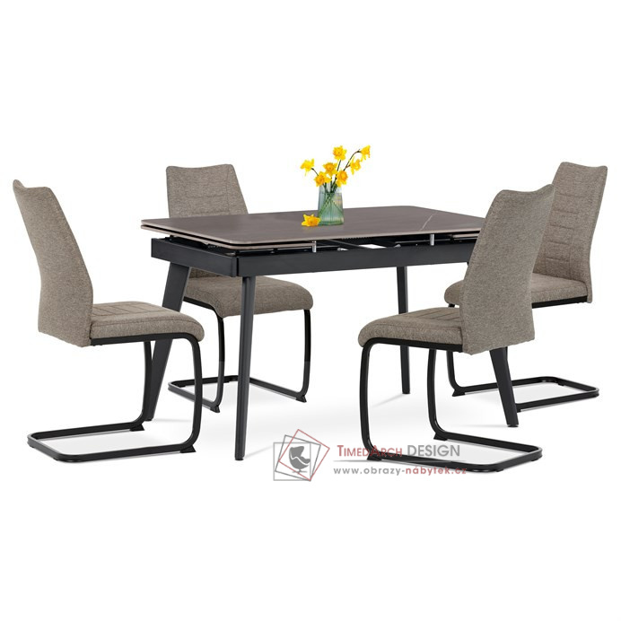 Sedák a opěrák je očalouněný látkou béžové barvy.